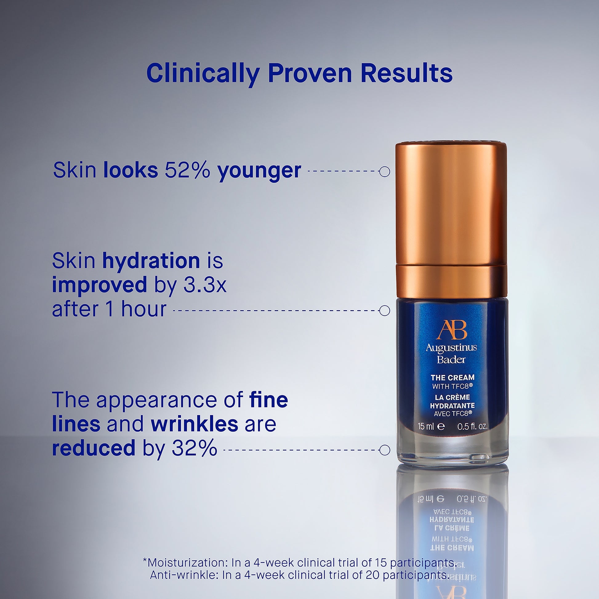 - TFC8® : A complex of natural amino acids, high-grade vitamins and synthesized molecules naturally found in skin, which guides key nutrients and powerful natural ingredients to the skin creating an optimal environment for the body's innate processes of repair and renewal.