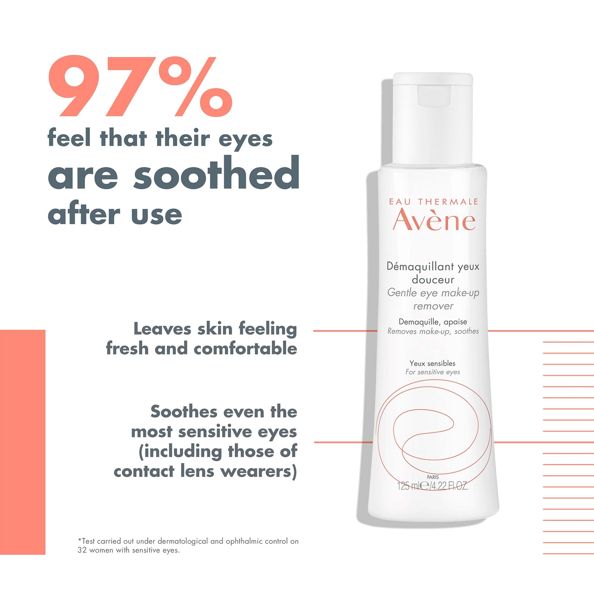 Effortlessly wipe away the day, with the Avène Gentle Eye Make-Up Remover for Sensitive Skin. Thorough yet gentle, the eye-makeup remover can eliminate even tough waterproof mascara, without leaving skin feeling stripped or tight.