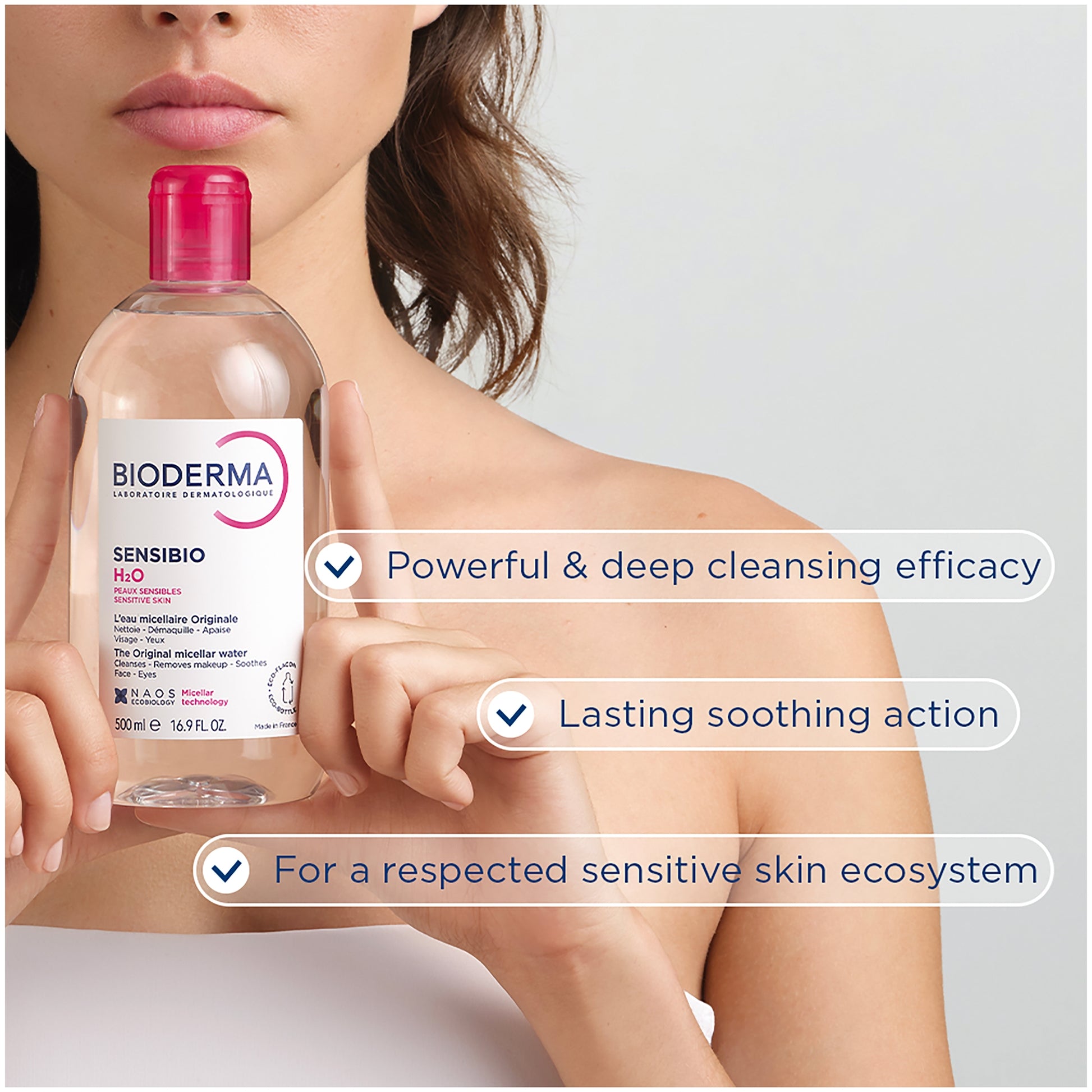 Made up of micelles with excellent cleansing and makeup removing properties, Sensibio H2O cleanses the face in the morning and evening, thus helps to prevent pollutants likely to exacerbate skin sensitivity from penetrating the skin.