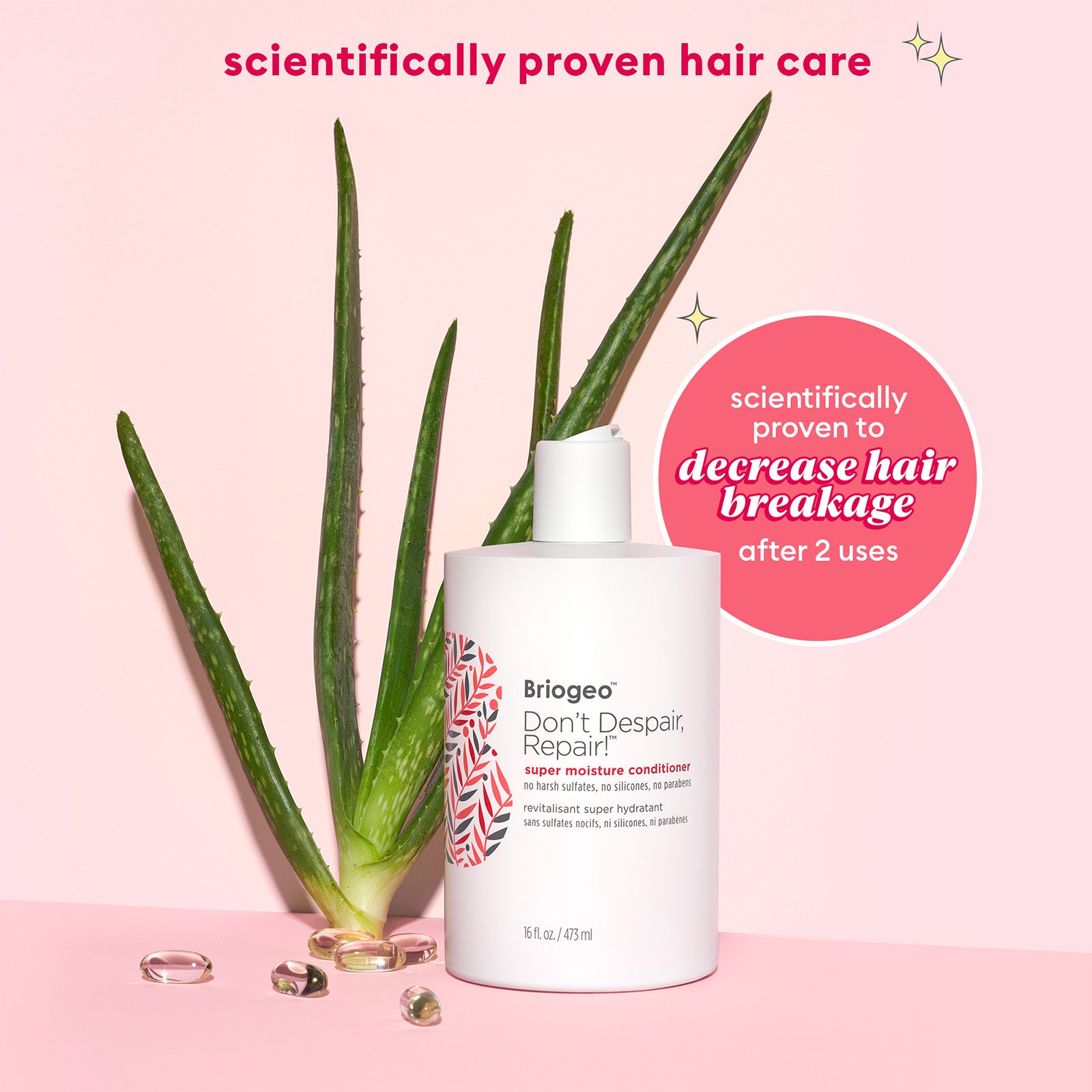 Briogeo's Don't Despair, Repair!™ Super Moisture Conditioner is clinically proven to decrease hair breakage after two uses. Formulated with algae extract, panthenol and micro-encapsulated argan oil, this moisturizing hair conditioner visibly restores breakage and fortifies hair. It is best used between your regular Deep Conditioning Mask routine for enhanced results.