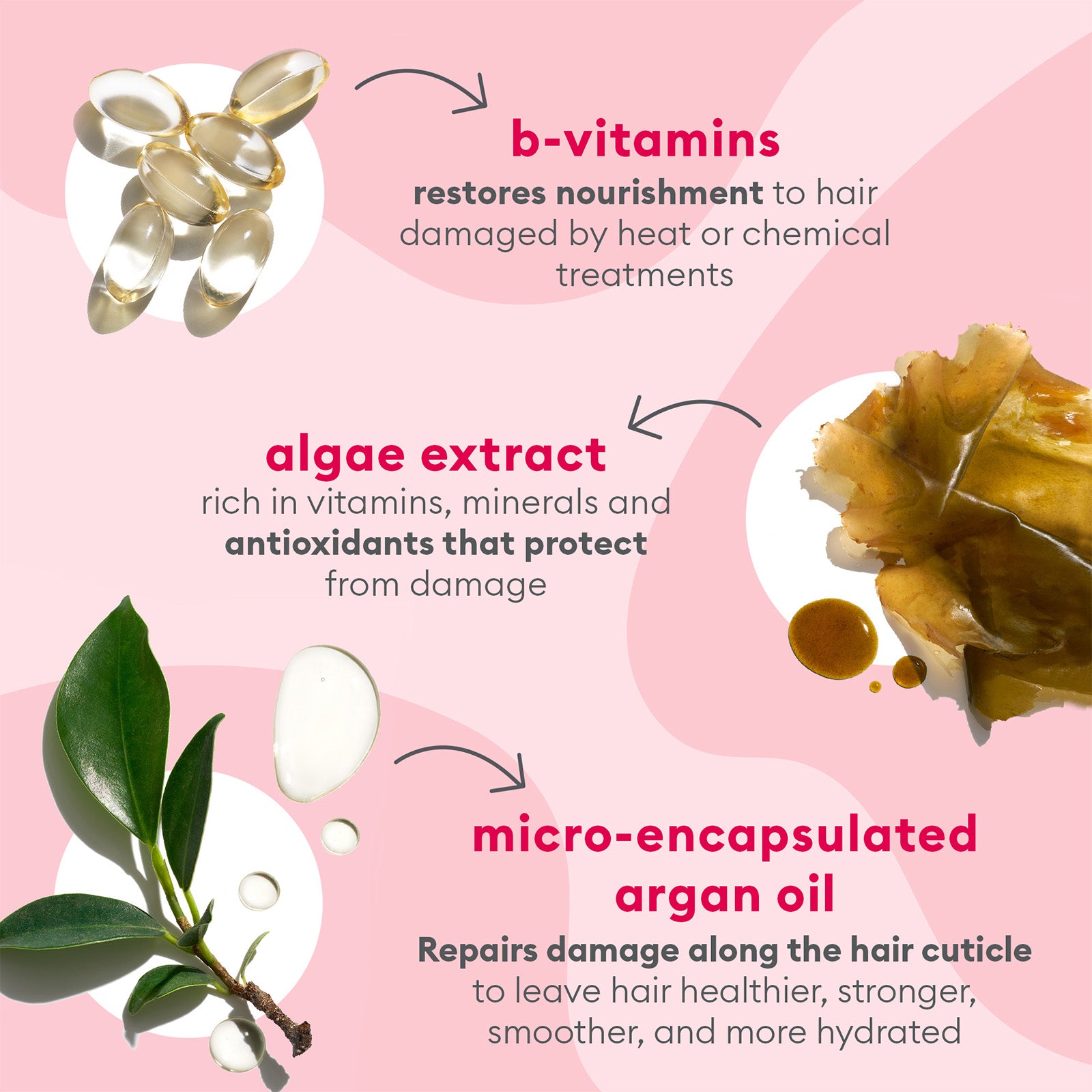 - Micro-Encapsulated Argan Oil: repairs damage along the hair cuticle to leave hair healthier, stronger, smoother and more hydrated
