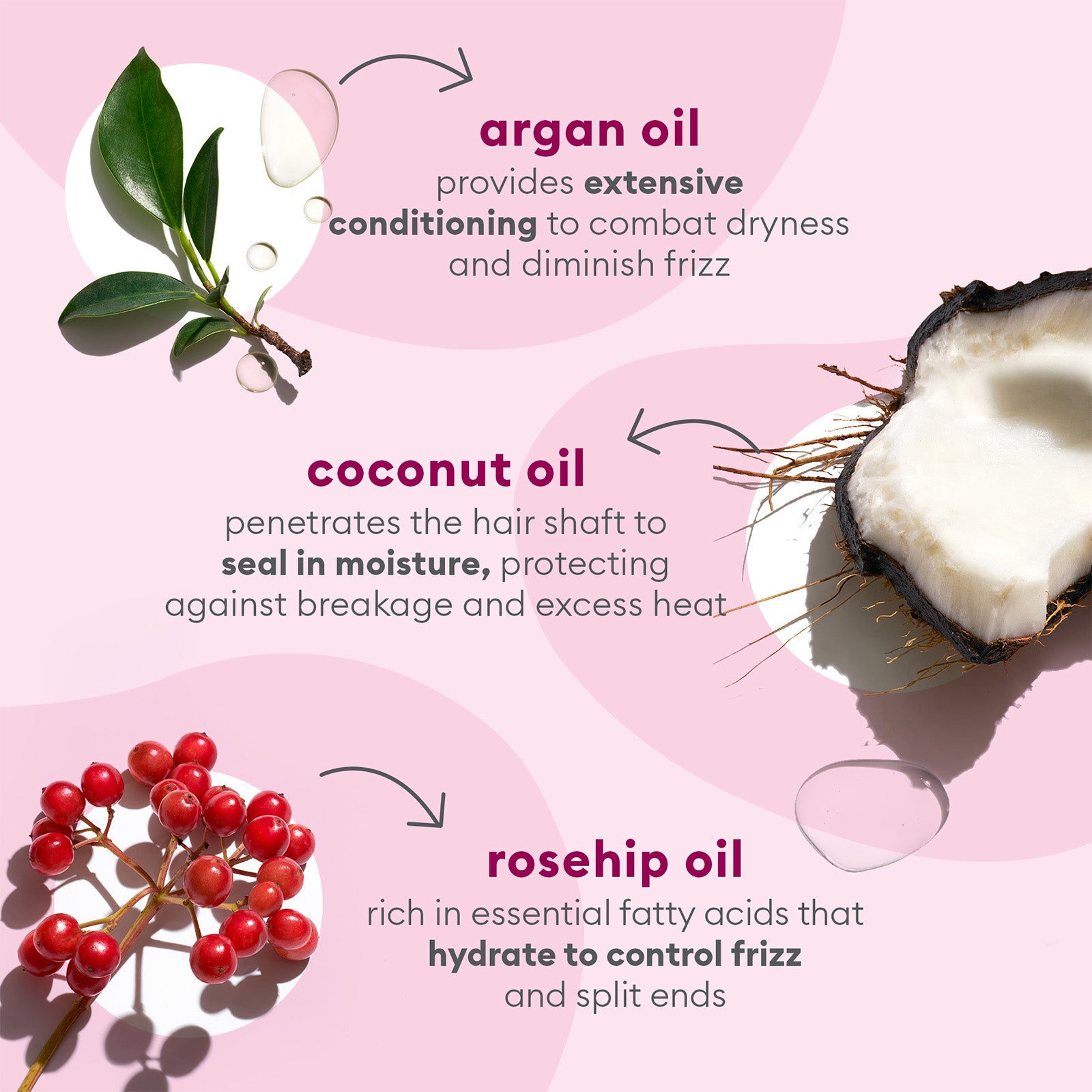 - Argan Oil: provides extensive conditioning and helps combat dryness and damage.