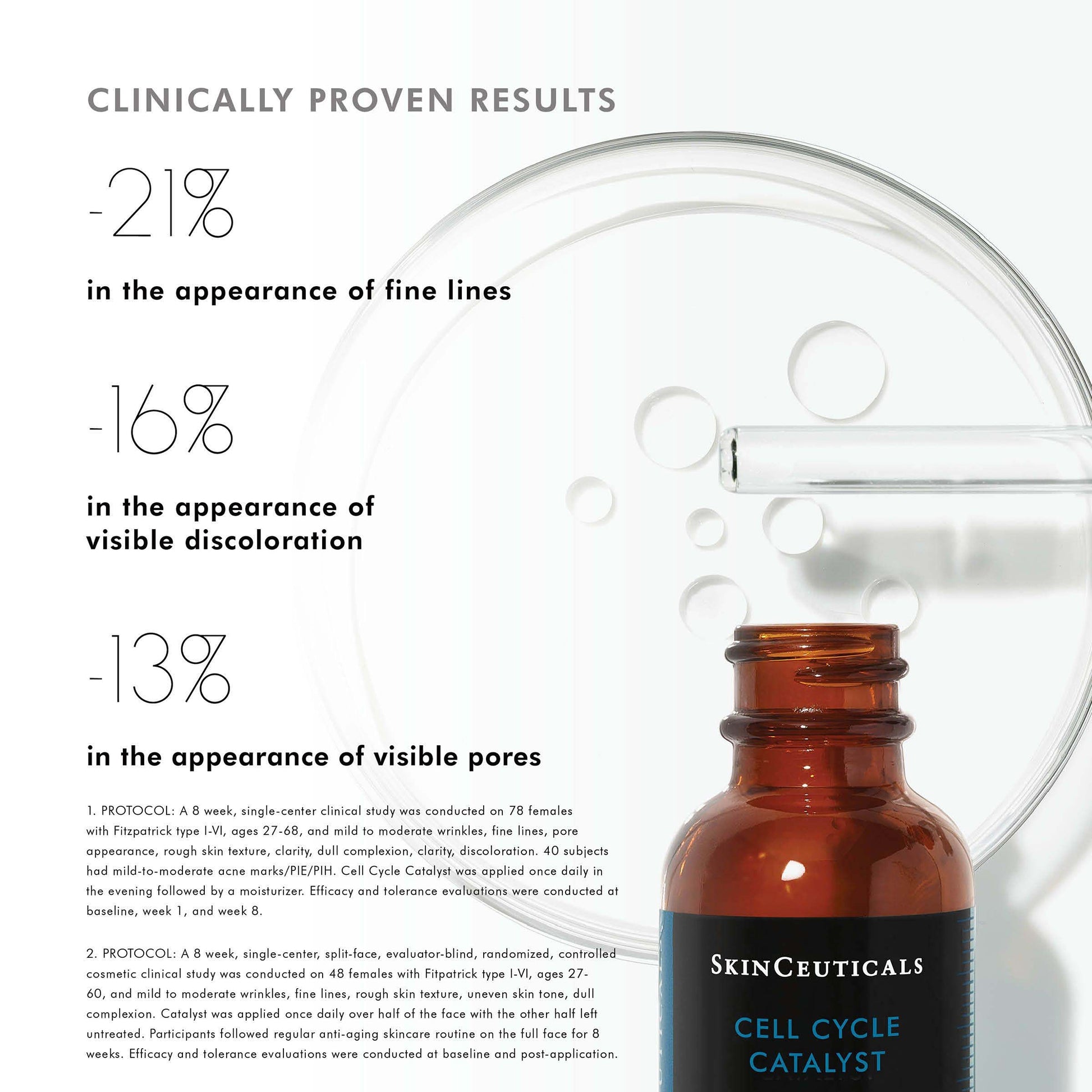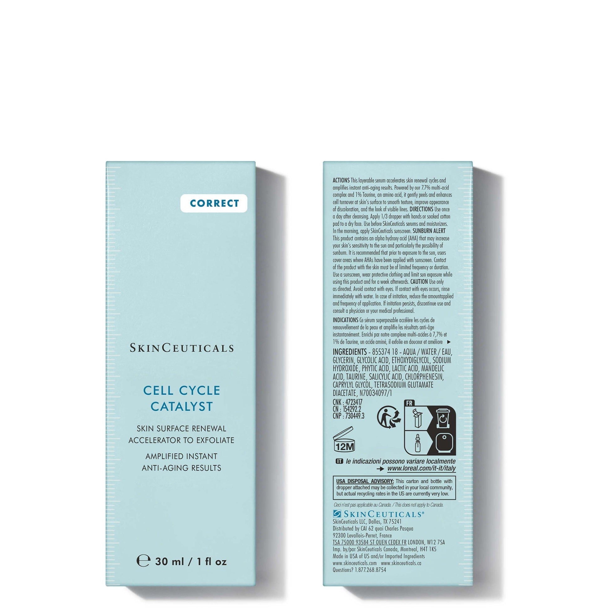 Cell Cycle Catalyst is a daily use, layerable serum clinically proven to boost anti-aging results. Powered in part by a 7.7% multi-acid complex (alpha hydroxy and beta hydroxy acids) and 1% Taurine, Cell Cycle Catalyst is clinically tested to gently peel and enhance cellular turnover at the skin's surface to smooth texture, improve the appearance of discoloration, and the look of visible lines. This anti-aging exfoliating serum helps maintain optimal hydration to support a healthy skin barrier.