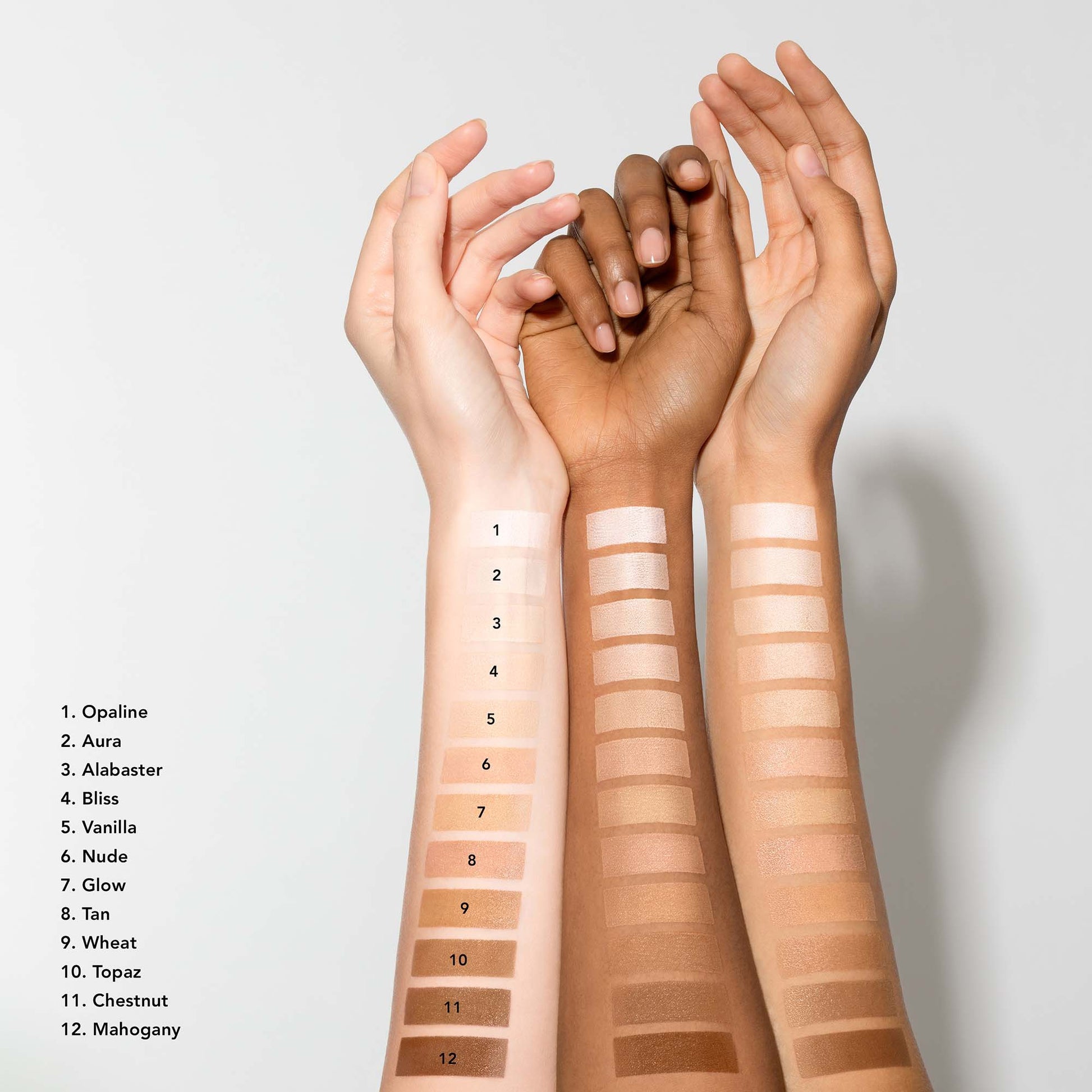 Active Ingredient(S): Titanium Dioxide; Inactive Ingredients: Water, Methyl Trimethicone, Neopentyl Glycol Diethylhexanoate, Butylene Glycol, Mica, Glycerin, Dimethicone, Diphenylsiloxy Phenyl Trimethicone, Peg-9 Polydimethylsiloxyethyl Dimethicone, Pentylene Glycol, Magnesium Sulfate, Disteardimonium Hectorite, Dimethicone/Peg-10/15 Crosspolymer, Polyglyceryl-2 Diisostearate, Caesalpinia Spinosa Fruit Extract, Stearic Acid, Aluminum Hydroxide, Alumina, Kappaphycus Alvarezii Extract, Tocopherol, Isostearic Acid, Spirodela Polyrhiza Extract, Alcohol, Rosa Damascena Flower Water, Leontopodium Alpinum Flower/Leaf Extract, Buddleja Davidii Extract, Thymus Vulgaris (Thyme) Flower/Leaf Extract, Camellia Sinensis Leaf Extract, Lonicera Japonica (Honeysuckle) Flower Extract, Glycine Soja (Soybean) Protein, Sodium Dextran Sulfate, Superoxide Dismutase, Ethylhexylglycerin, Phenoxyethanol, Sodium Benzoate, Potassium Sorbate, Iron Oxides (Ci 77491/Ci 77492/Cl 77499)