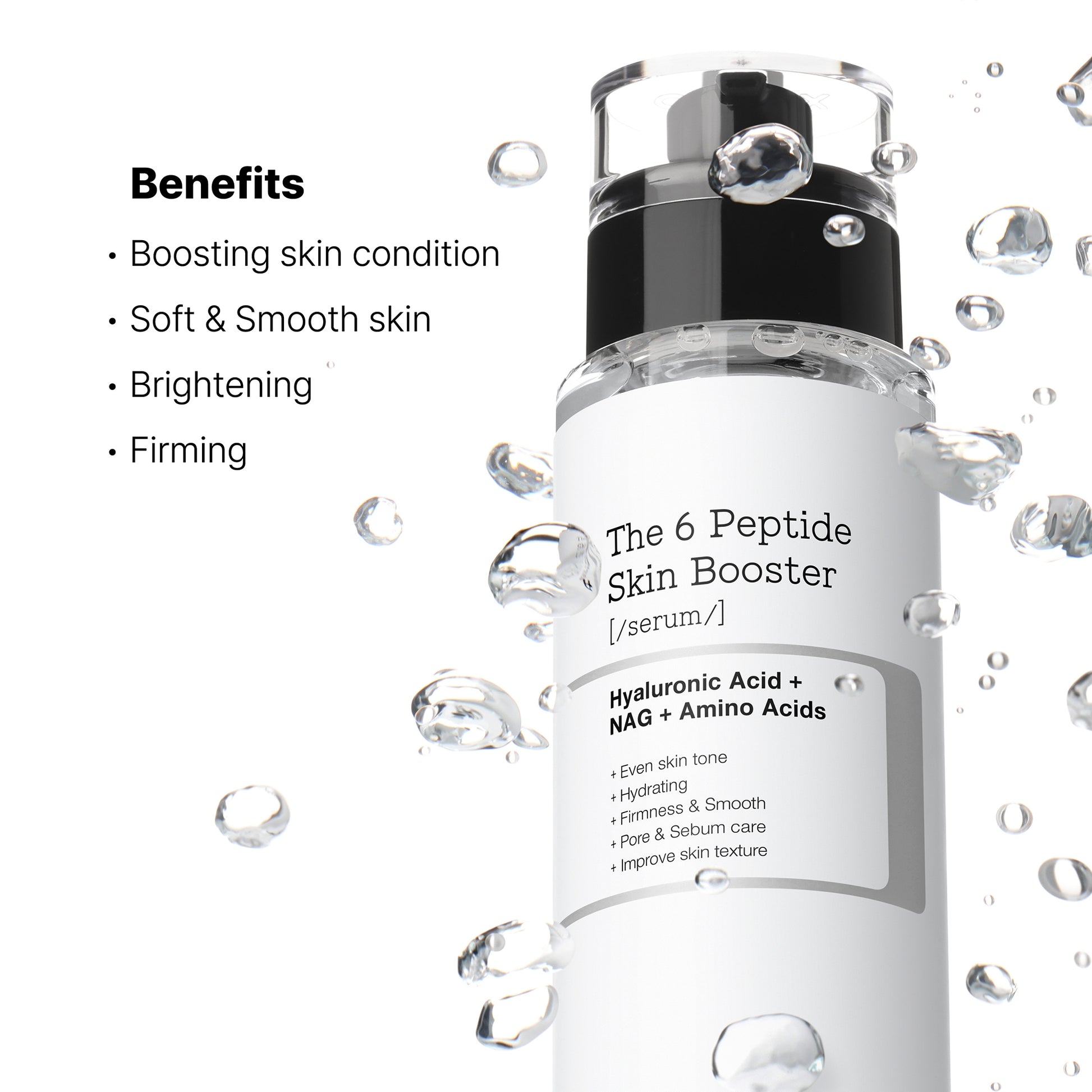 This Skin Boosting Serum has 6 peptides that improve skin elasticity, fine lines, pores, and radiance. Boost your skin's condition and achieve multiple benefits with this serum.