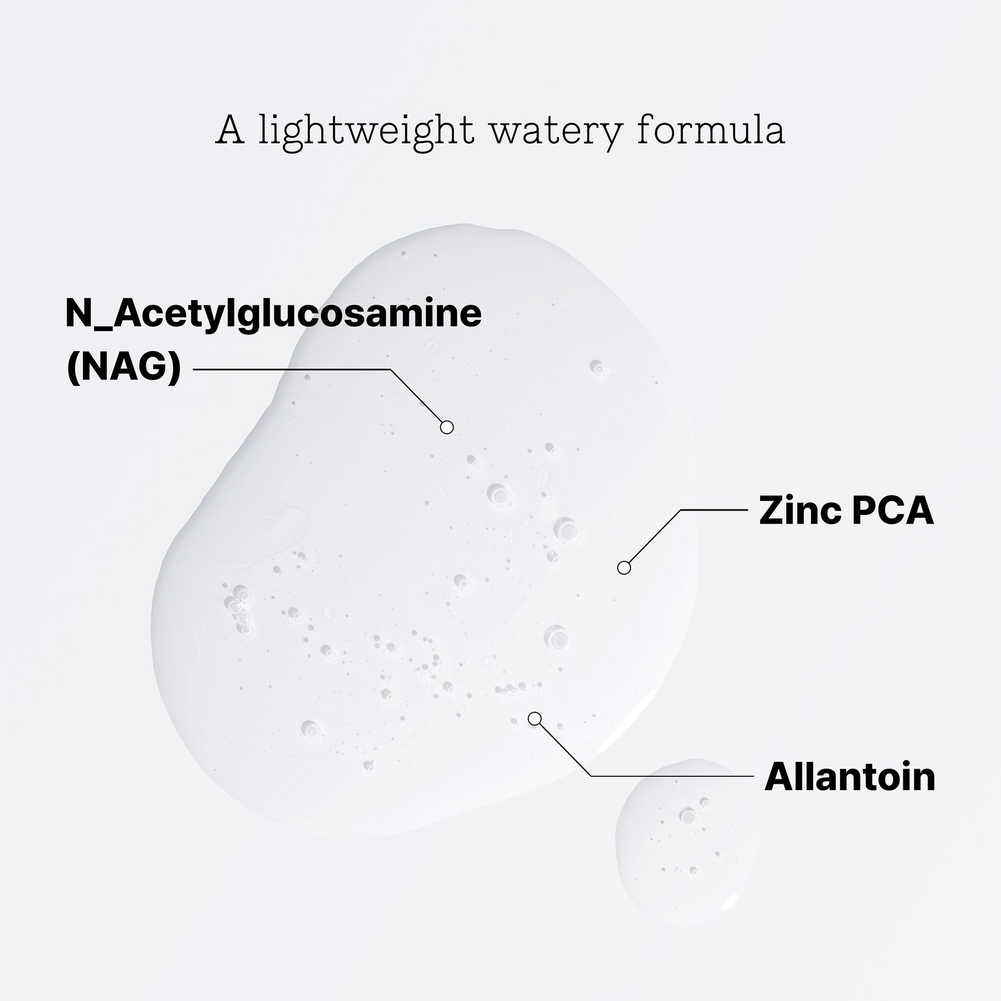 Water, Pentylene Glycol, Niacinamide(15%), Butylene Glycol, Acetyl Glucosamine, 1,2-Hexanediol, Zinc PCA, Trehalose, Xanthan Gum, Pullulan, Allantoin, Ethylhexylglycerin, Sodium Phytate, Citric Acid, Tocopherol