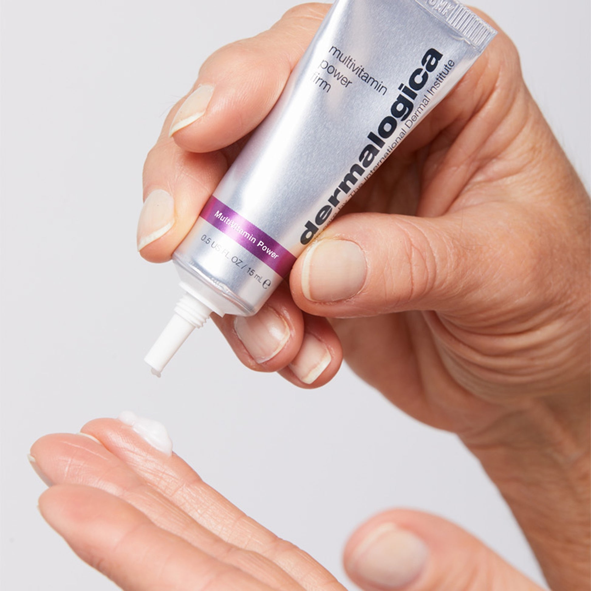 Dermalogica MultiVitamin Power Firm is formulated with vitamins A, C and E to increase elasticity while neutralizing free radicals. Red seaweed extract firms the skin, smoothing away fine lines for a more youthful appearance. Organic silicones prevent moisture loss and strengthen skin while green tea leaf extract provides exceptional antioxidant protection. Developed for use around the eyes and mouth, this gentle formula restores a youthful tone and texture, and leaves skin soft and comfortable.