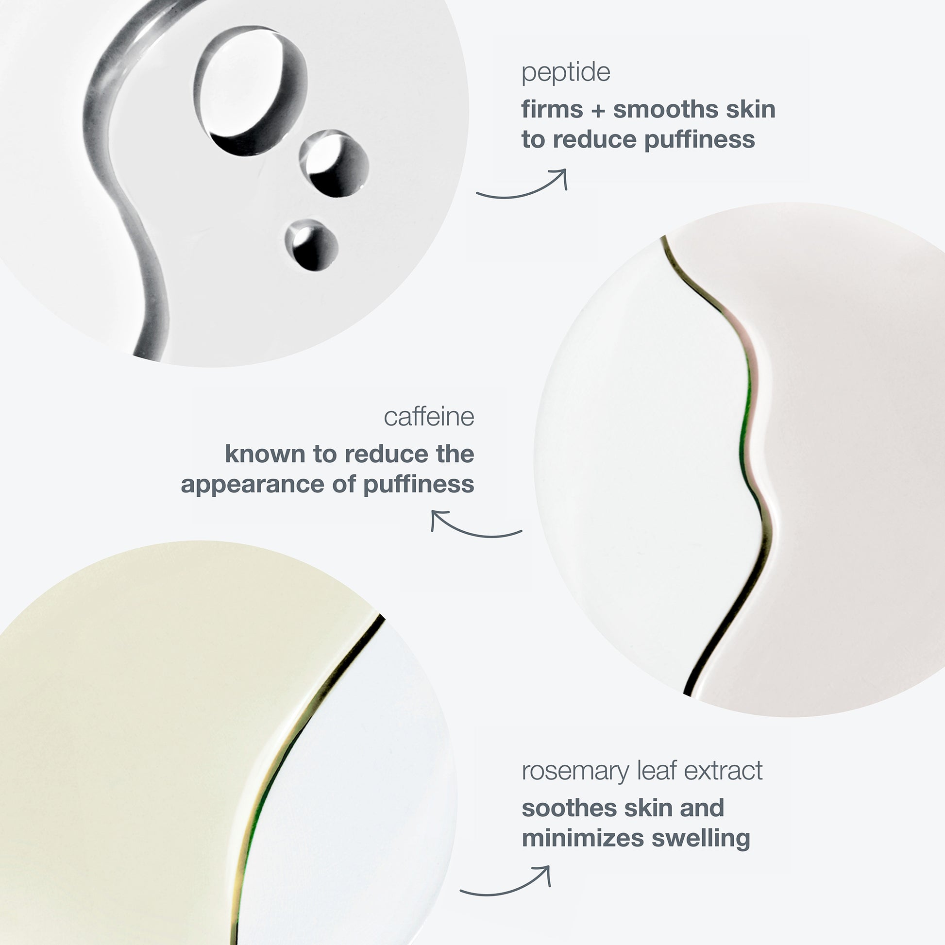 Water/Aqua/Eau, Polysilicone-11, Glycerin, Maltodextrin, Magnesium Aluminum Silicate, Butylene Glycol, Pyrus Malus (Apple) Fruit Extract, Palmitoyl Tetrapeptide-7, Caffeine, Rosmarinus Officinalis (Rosemary) Leaf Extract, Coleus Forskohlii Root Extract, Helichrysum Italicum Extract, Voandzeia Subterranea Seed Extract, Lactic Acid, Hydrolyzed Jojoba Esters, Pentylene Glycol, Hydroxyacetophenone, Diosmine, Polyglyceryl-10 Laurate, Caprylyl Glycol, Laureth-12, Chrysin, Xanthan Gum, Ethylhexylglycerin, Polyglyceryl-4 Caprate, Sorbitan Oleate, Tetrasodium Glutamate Diacetate, Barium Sulfate, Sodium Carbonate, Polysorbate 20, Sodium Hydroxide, Propanediol, Sodium Polyacryloyldimethyl Taurate, Succinic Acid.