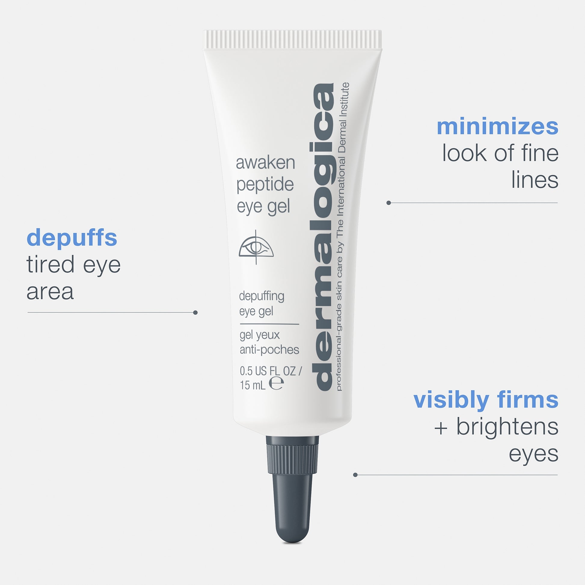 Dermalogica's Awaken Peptide Eye Gel minimizes the appearance of fine lines and puffiness over time. A powerful blend of caffeine and highly active peptides helps to decrease the appearance of tired, puffy eye bags and helps you fake a full night's sleep.