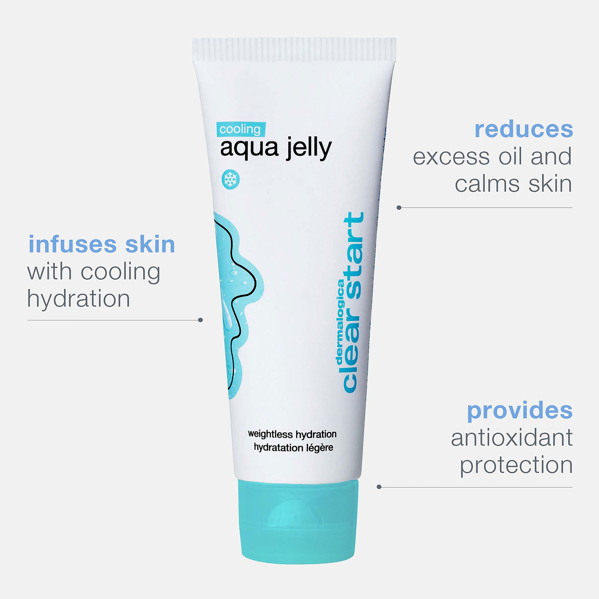 Dermalogica's Clear Start Aqua Cooling Jelly Moisturizer features a water-like texture that leaves skin feeling fresh and lightly hydrated. Formulated for acne-prone and oily skin types, this weightless formula contains algae extract and hyaluronic acid to hydrate, nourish and lock in moisture for a glass-like glow.