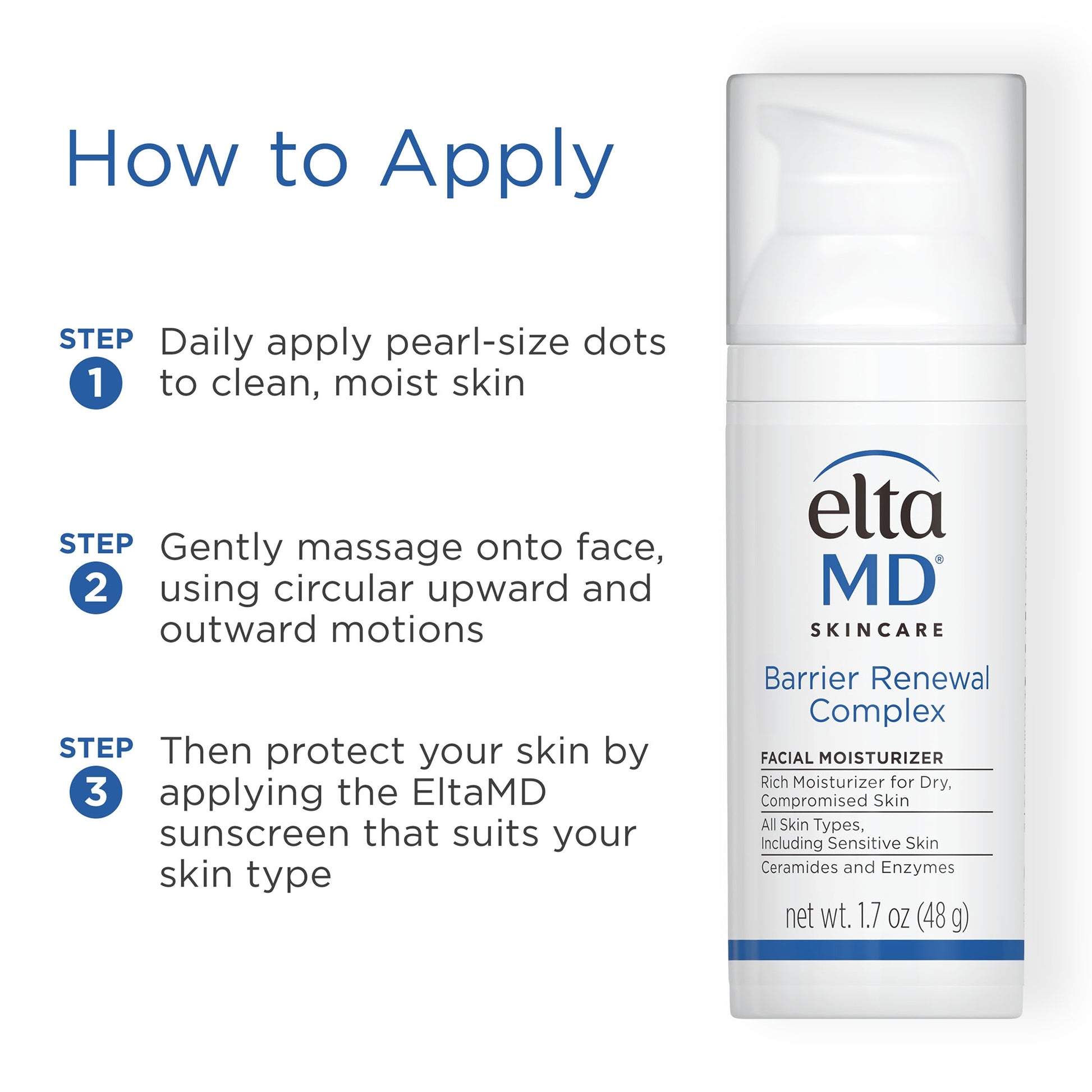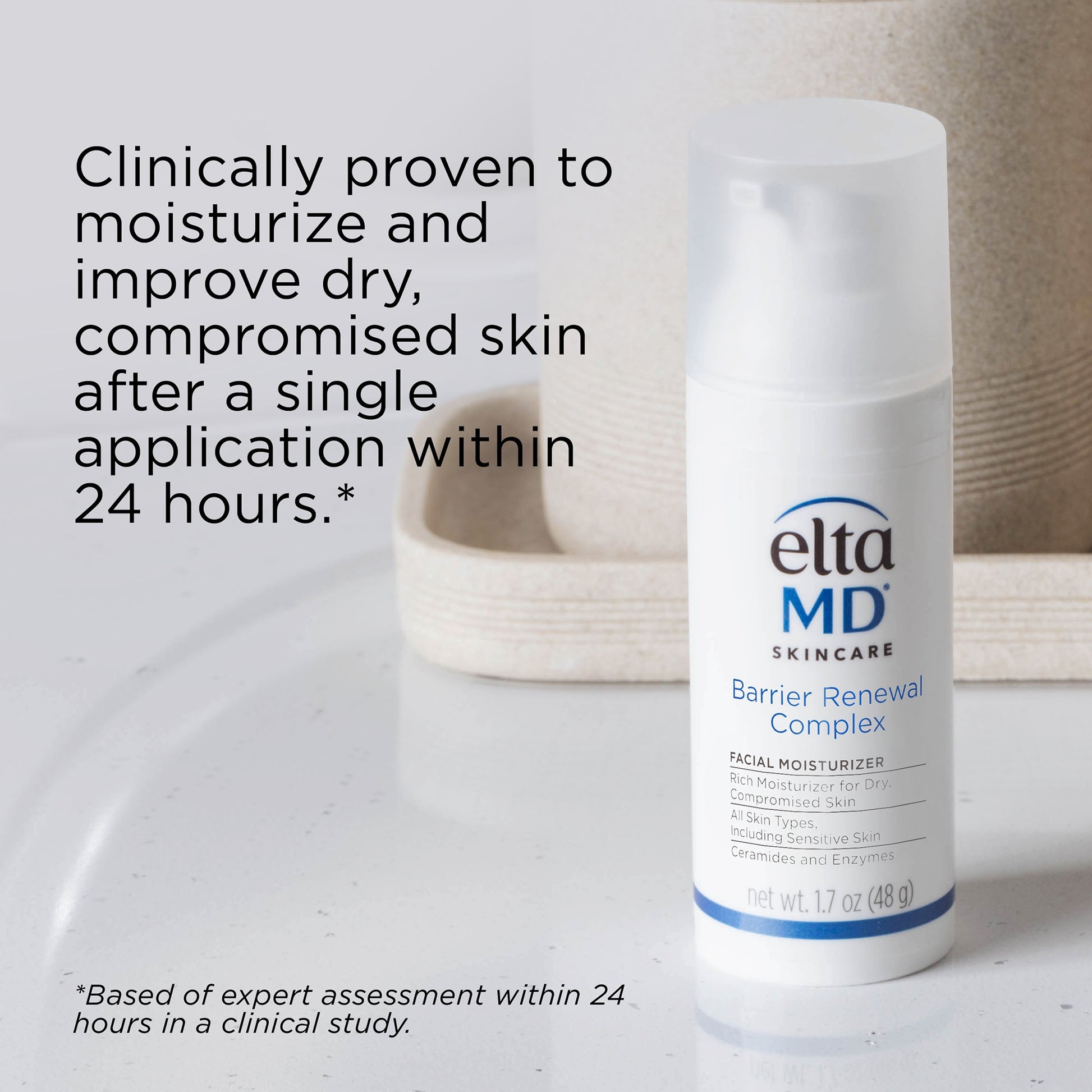 EltaMD Barrier Renewal Complex restores the vibrant glow of youth by improving the tone and texture of your skin. Five unique ceramides replenish moisture loss and increase water retention to soften lines and wrinkles and instantly comfort dry skin. Enzymes and essential lipids strengthen your complexion and promote cell turnover to make your skin bright and smooth.