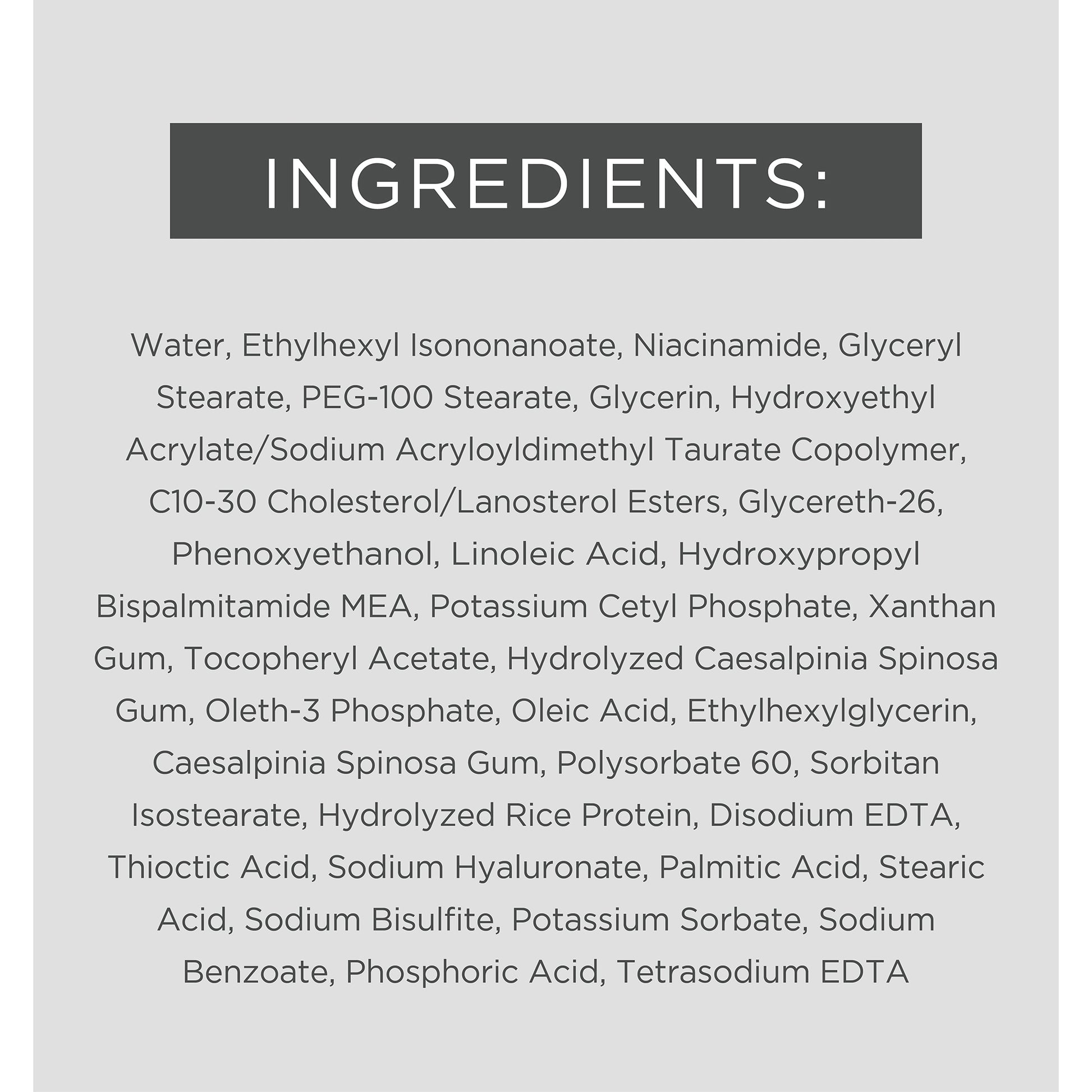 Water, Ethylhexyl Isononanoate, Niacinamide, Glyceryl Stearate, PEG-100 Stearate,