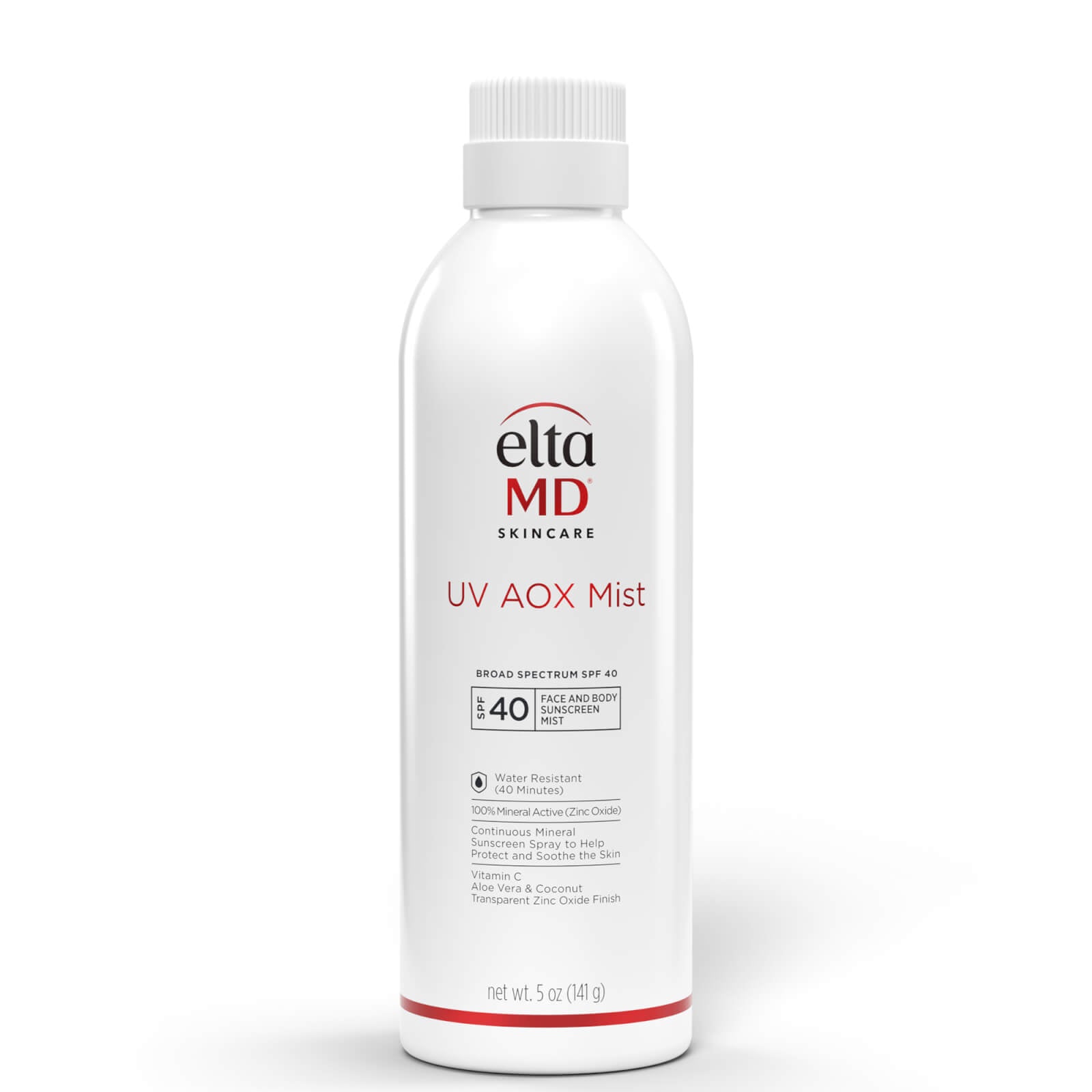 Enjoy a reimagined sunscreen spray experience with EltaMD UV AOX Mist SPF 40 - a sheer-finish 100% mineral sunscreen spray that's enriched with antioxidants to help prevent premature aging and rejuvenate skin. This lightweight and water-resistant formula is gentle enough to wear daily and leaves skin feeling hydrated and moisturized. With our white-to-clear technology, the only time you see the sunscreen is when you're spraying it on (so you don-t miss a spot!). It conveniently absorbs into the skin within seconds and blends flawlessly into all skin types - no streaks, patches or white cast in sight.
