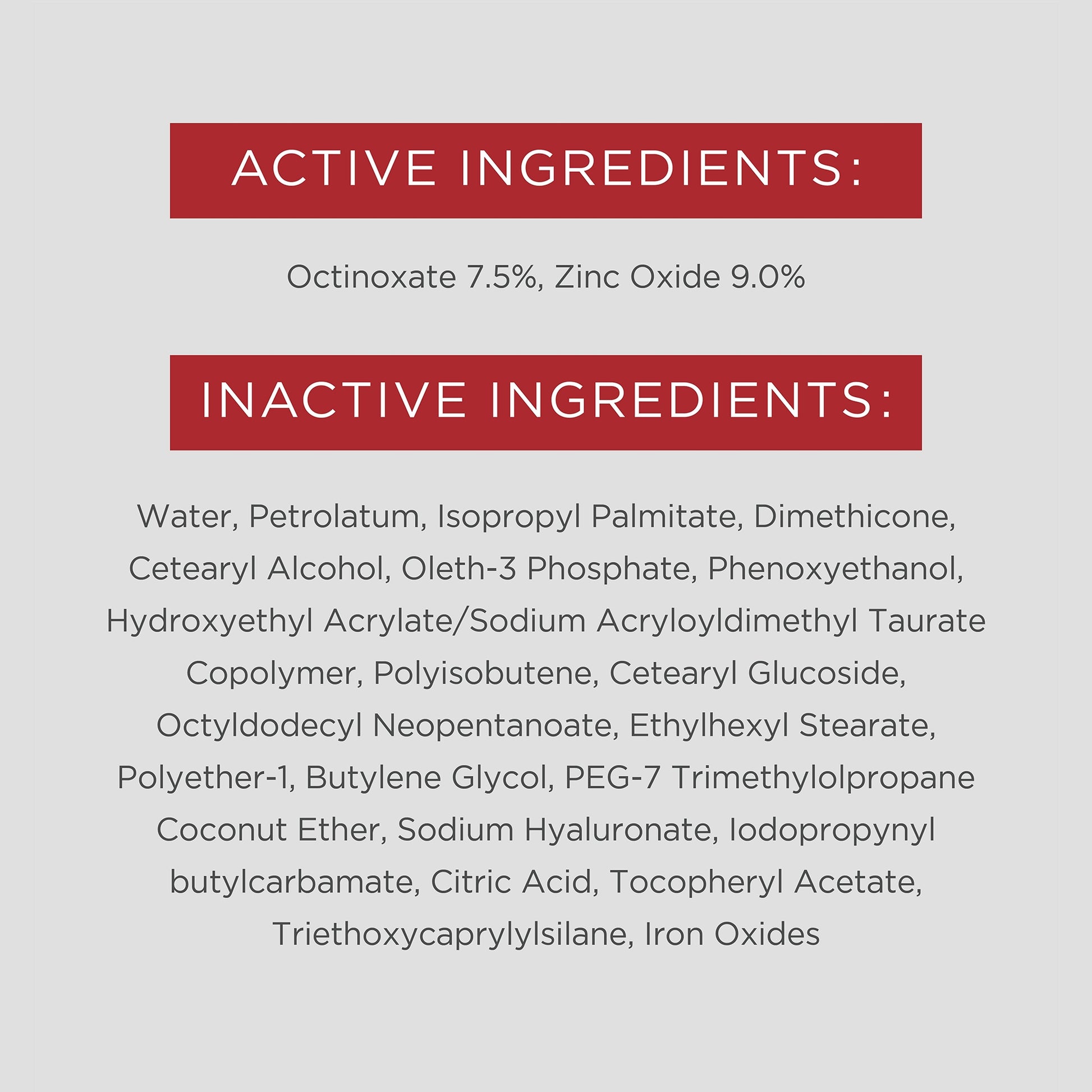 Butylene Glycol, Cetearyl Alcohol, Cetearyl Glucoside, Dimethicone, Ethylhexyl Stearate, Hydroxyethyl Acrylate/Sodium, Acryloyldimethyl Taurate Copolymer, Iodopropynyl butylcarbamate, Iron Oxides, Isopropyl Palmitate, Octyldodecyl Neopentanoate, Oleth-3 Phosphate, PEG-7 Trimethylolpropane Coconut Ether, Petrolatum, Phenoxyethanol, Polyether-1, Polyisobutene, Sodium Hyaluronate, Tocopheryl Acetate, Triethoxycaprylylsilane, Water/Eau