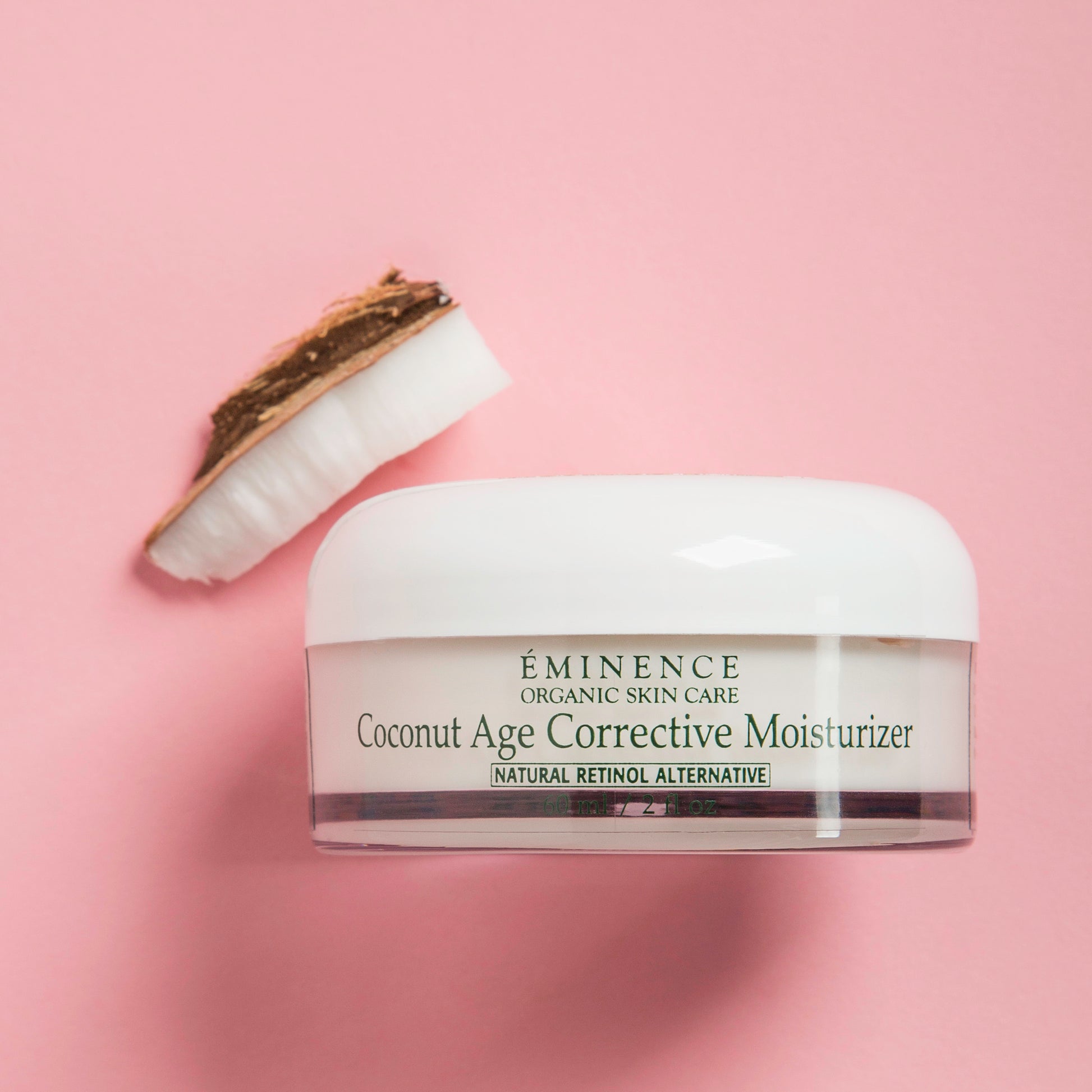 Eminence Organics Coconut Age Corrective Moisturizer features coconut oil, coconut water, swiss green apple stem cells and a natural retinol alternative complex to reduce the signs of aging. Formulated for normal to dry skin types, this face cream deeply moisturizes the skin, balancing its pH, while toning and strengthening using electrolytes, vitamin C, calcium, potassium and phosphorus. Nut-free.