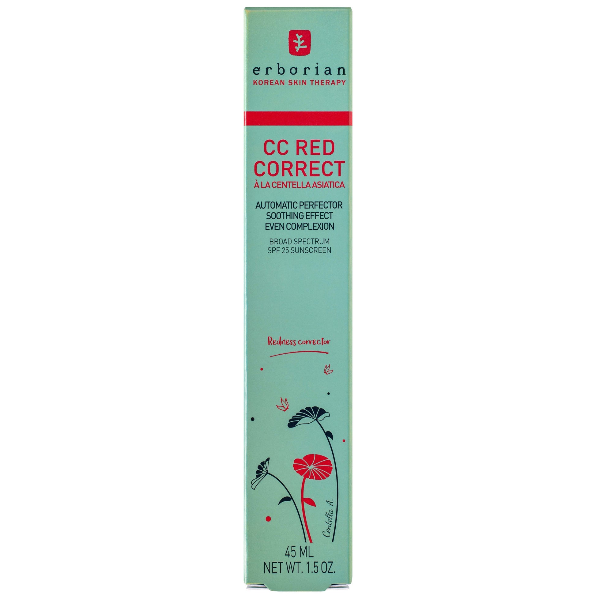 Apply a fine layer of Erborian CC Red Correct all over clean skin using your fingertips, a brush, or a wet beauty blender. Gently blend your green color corrector all over, adding more cream to areas that may need more coverage.