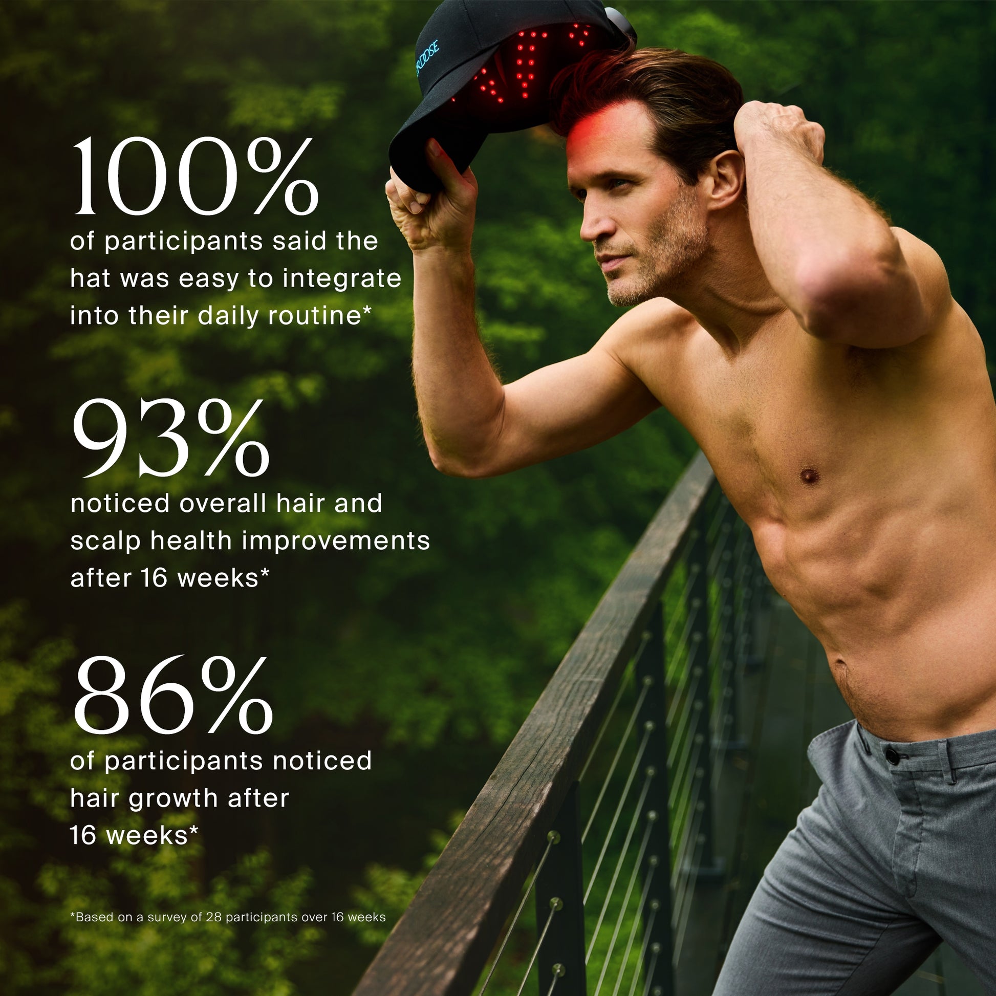 - Use The RED LIGHT HAT daily for 10 minutes for 16 weeks
