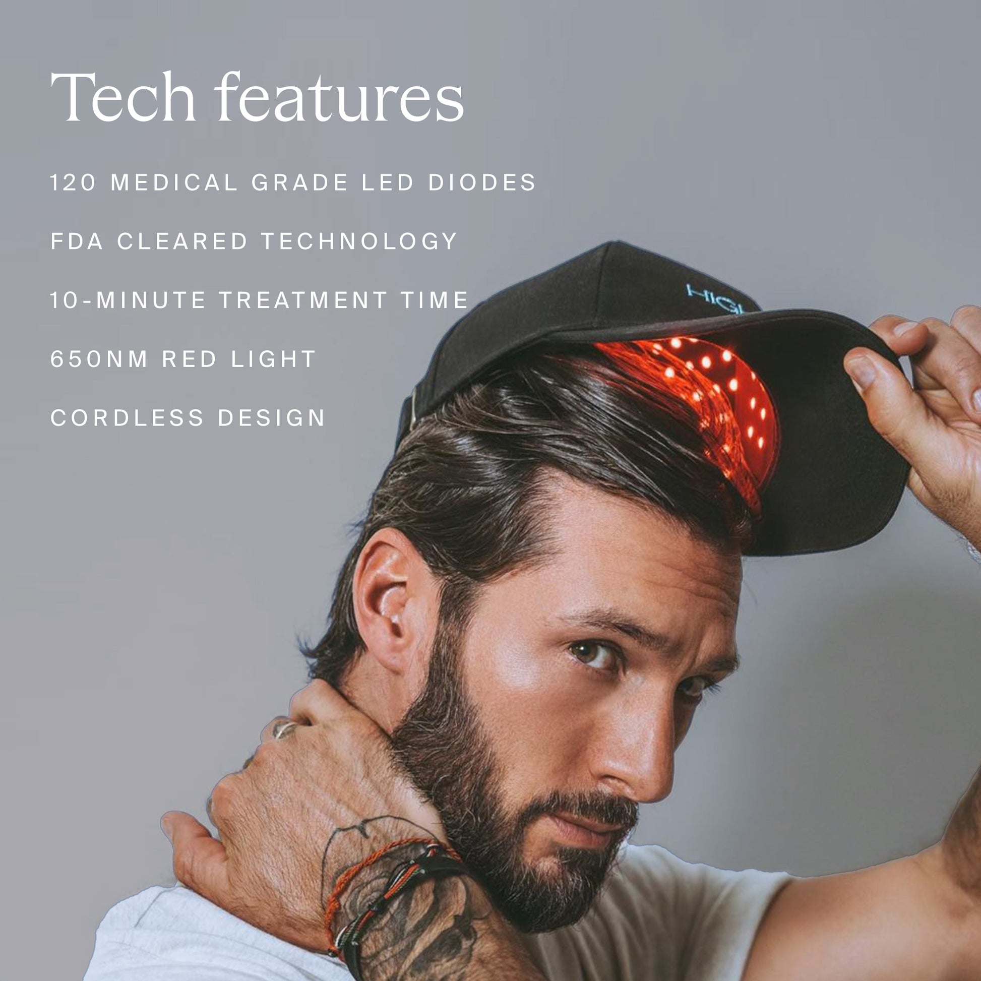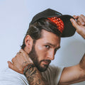 We turned a "Bad Hair Day" hack (a hat) into a supercharged hair growth and scalp revitalization solution. Meet the HIGHERDOSE RED LIGHT HAT. Harnessing the power of 650nm red light, this device increases blood circulation to the scalp, promoting healthier hair follicles and rejuvenating the scalp - which may lead to decreased hair loss, optimized hair follicle function, and increased growth. Sexy hair starts with the scalp. A healthy scalp starts with this hat.