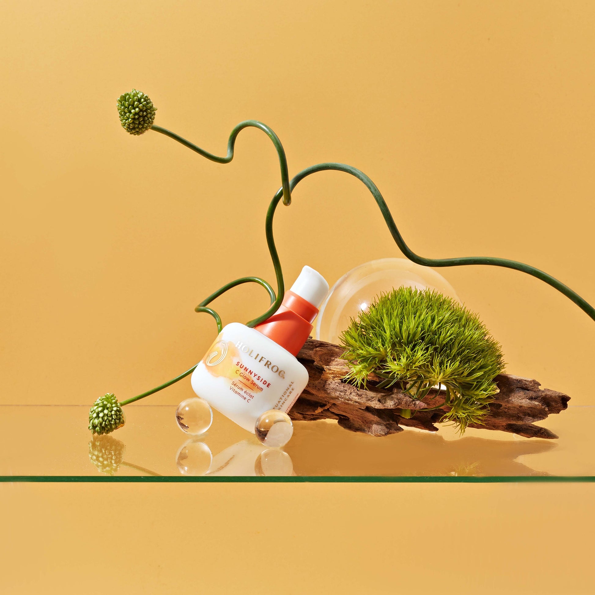 HoliFrog’s Sunnyside C Glow Serum features a powerful formula that addresses various skin concerns including fine lines, wrinkles, discoloration and free radical damage. Containing a combination of antioxidants, acids, adaptogens and plant-based actives, this potent blend works together to gently restore the skin’s appearance by helping brighten, firm and even skin tone and texture for a healthy and resilient complexion.