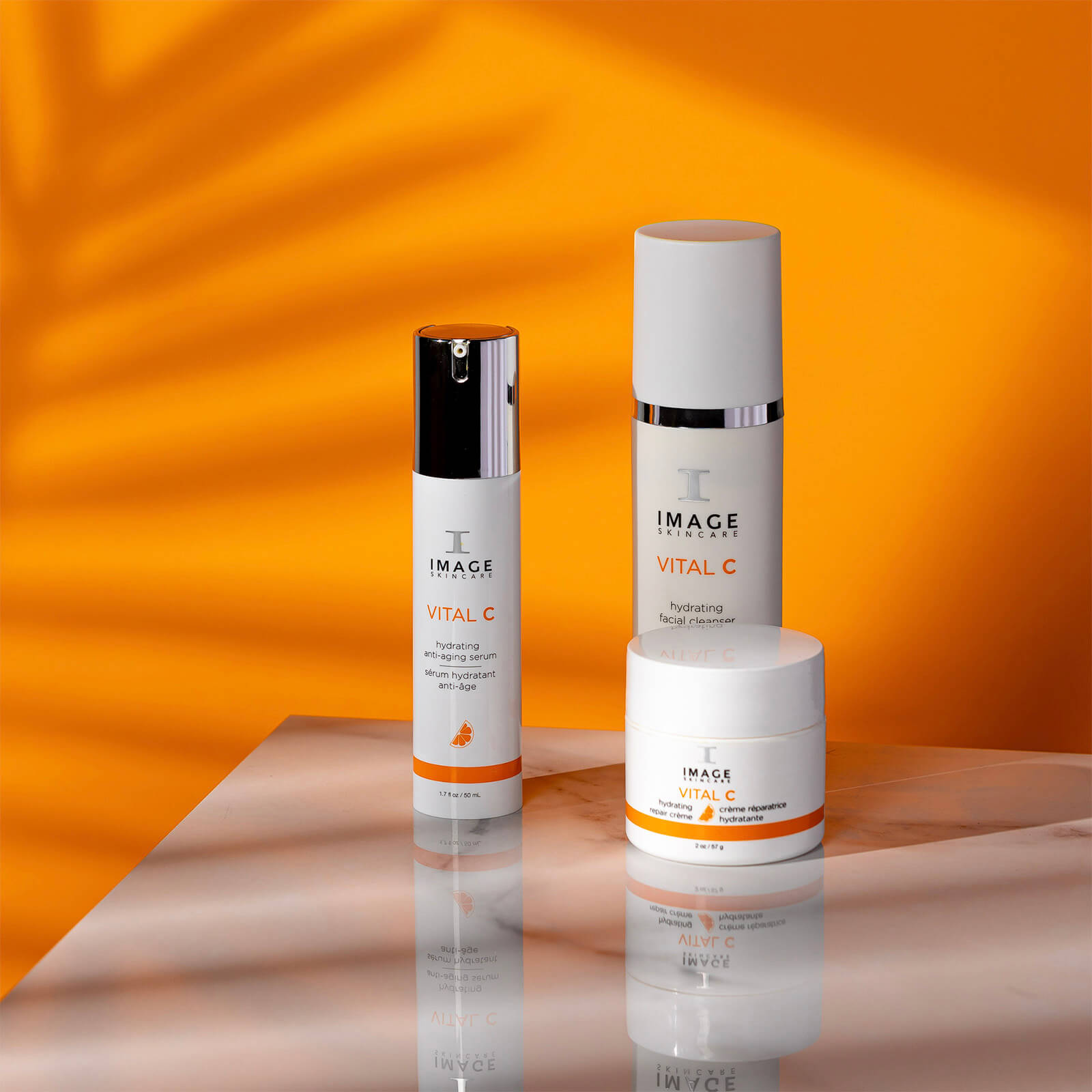 *Based on a 4-week clinical study and consumer panel of 35 participants ages 25 - 55 with daily application of VITAL C hydrating anti-aging serum. All photos taken at a third-party independent clinical testing laboratory. Photos have not been retouched. Study data on file with Image International Manufacturing, LLC.