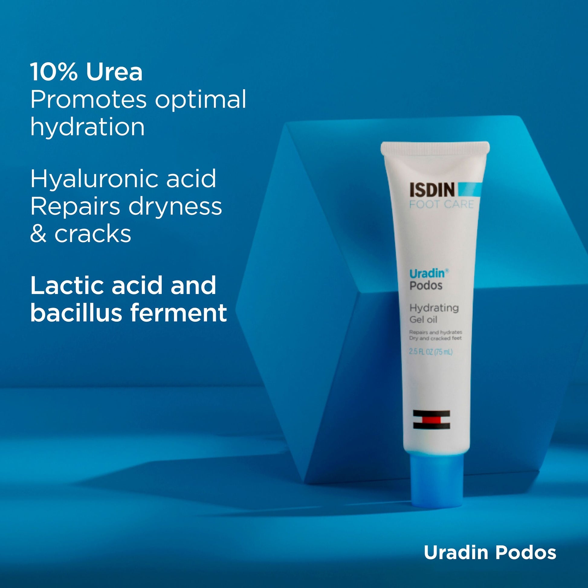 Uradin Podos is a lightweight hydrating gel oil which quickly absorbs into the skin, designed to eliminate hard, rough skin on both the heels and soles of the feet, Dual exfoliating and moisturizing action works to help feet feel softer and look visibly smoother, Within just a few days of use, rough, scaly skin will be visibly reduced,