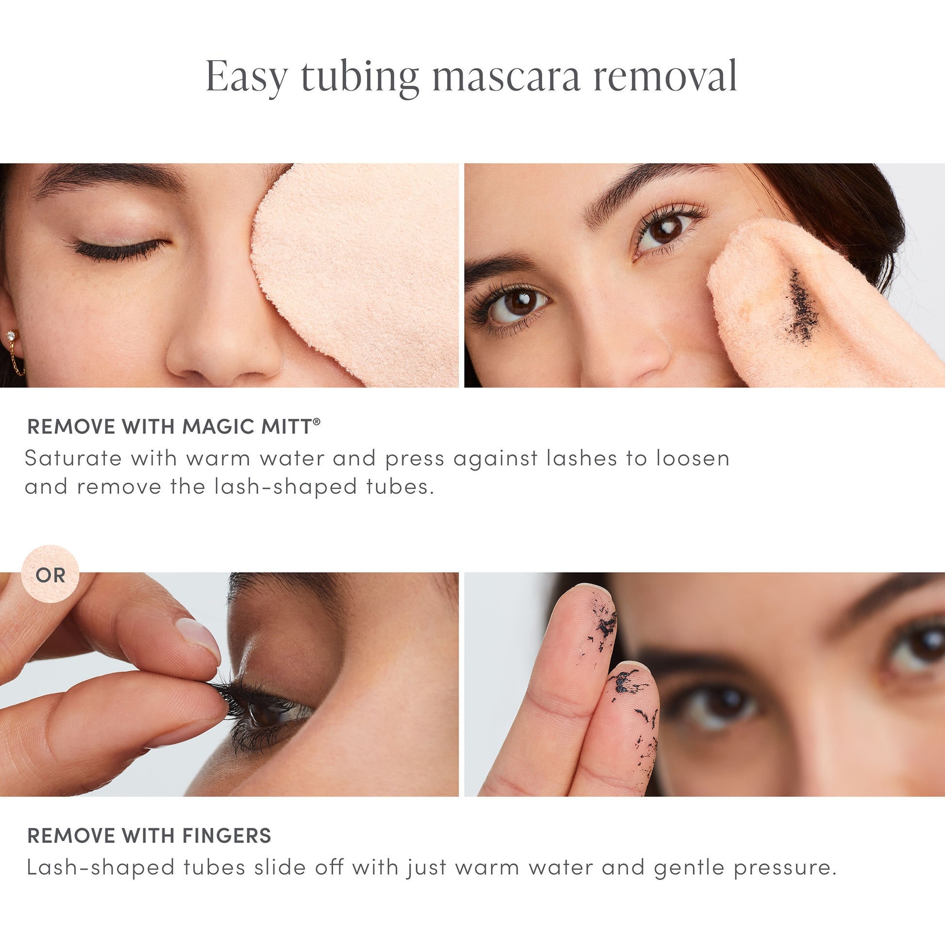 Removal: Saturate lashes with warm water and use gentle pressure to loosen and remove the lash-shaped tubes.