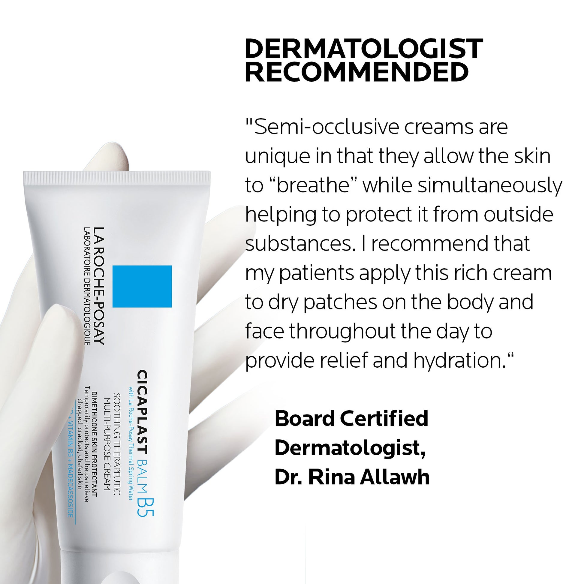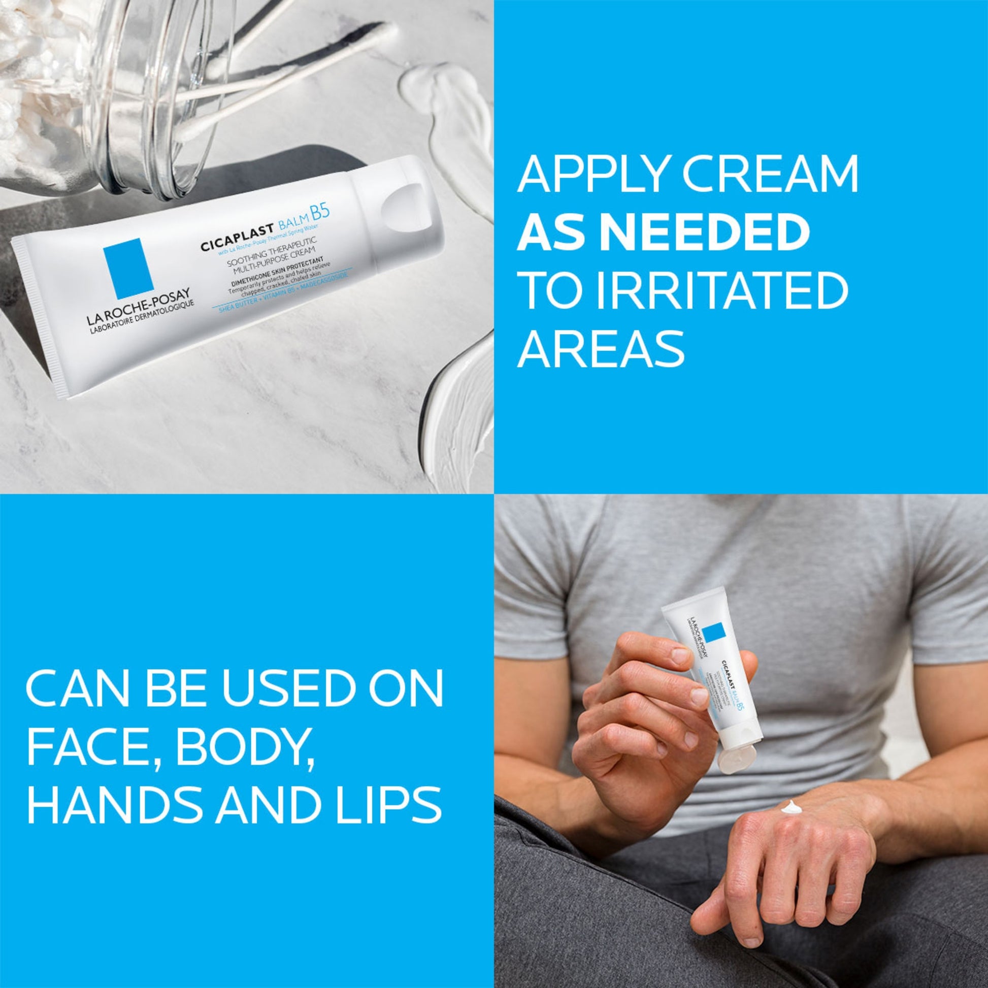 Cicaplast Balm B5 is a multi-purpose soothing therapeutic cream that helps to protect and relive dry skin irritations on body, hands, and face. Formulated with shea butter and glycerin.