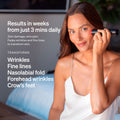 Transforms wrinkles, fine lines, nasolabial fold, forehead wrinkles and crow's feet. Optimized for all skin tones.