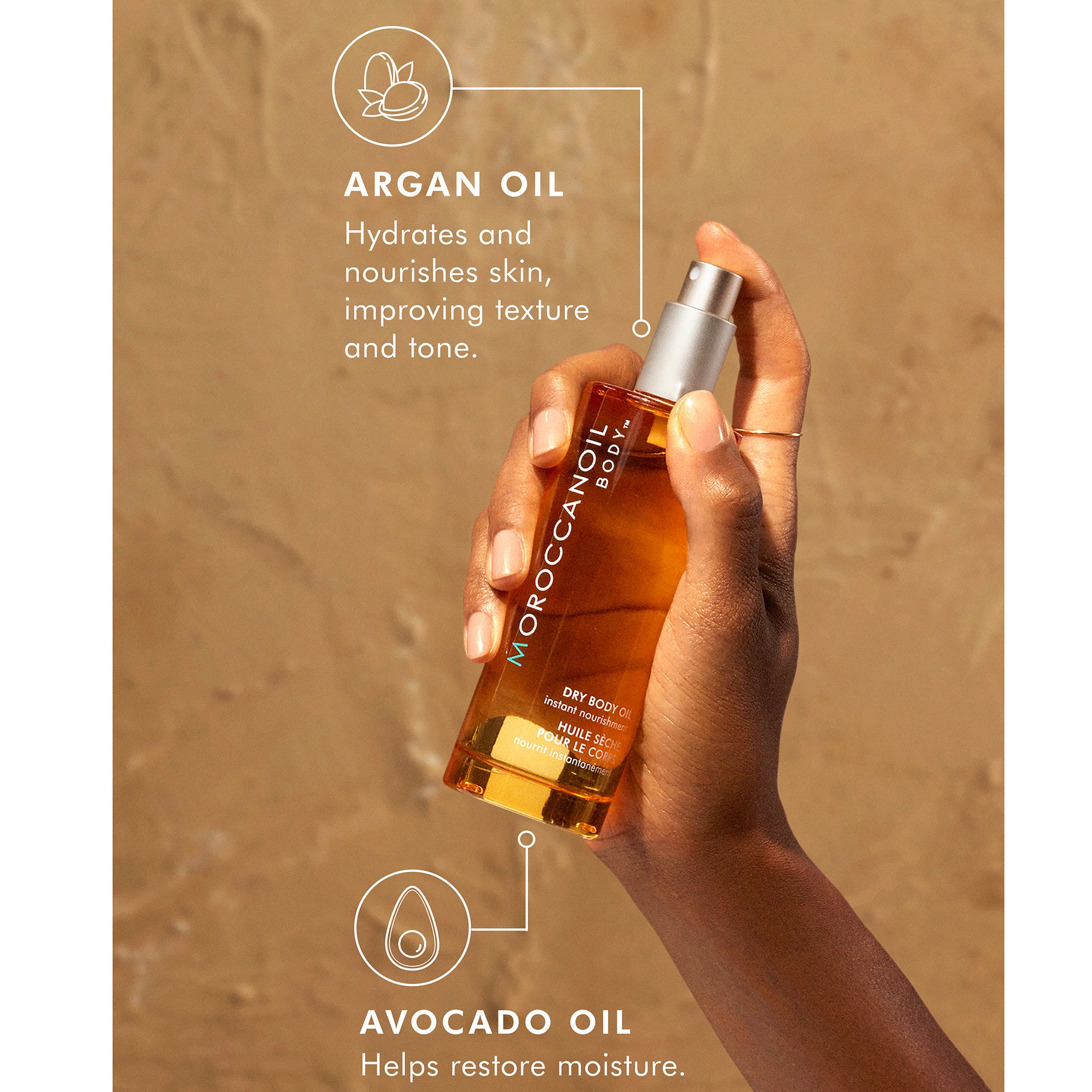 Moroccanoil Dry Body Oil is a fast-absorbing, dry-finish body oil that infuses skin with moisture for soft, touchable results. The weightless formula contains antioxidant-rich argan, olive, and avocado oils to help restore moisture and build skin's natural defenses.