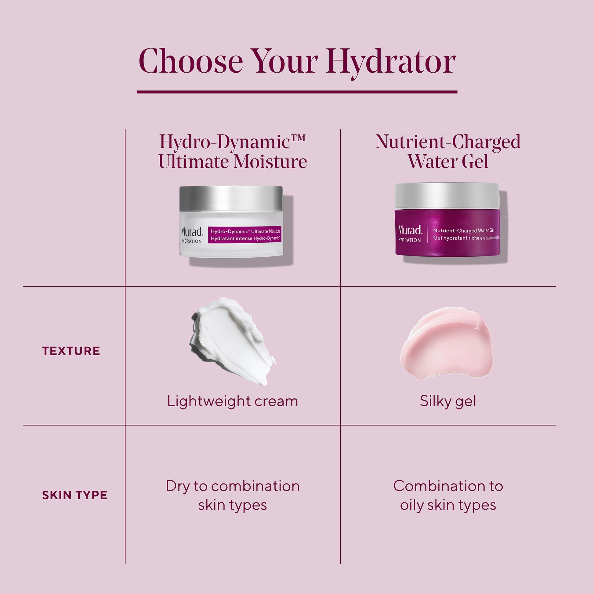 When your skin craves moisture, reach for Murad's Nutrient-Charged Water Gel. Feel the nourishing power of this oil-free moisturizer's powerful peptides and vitamin E enriched formula, ready to take on signs of aging and dryness.