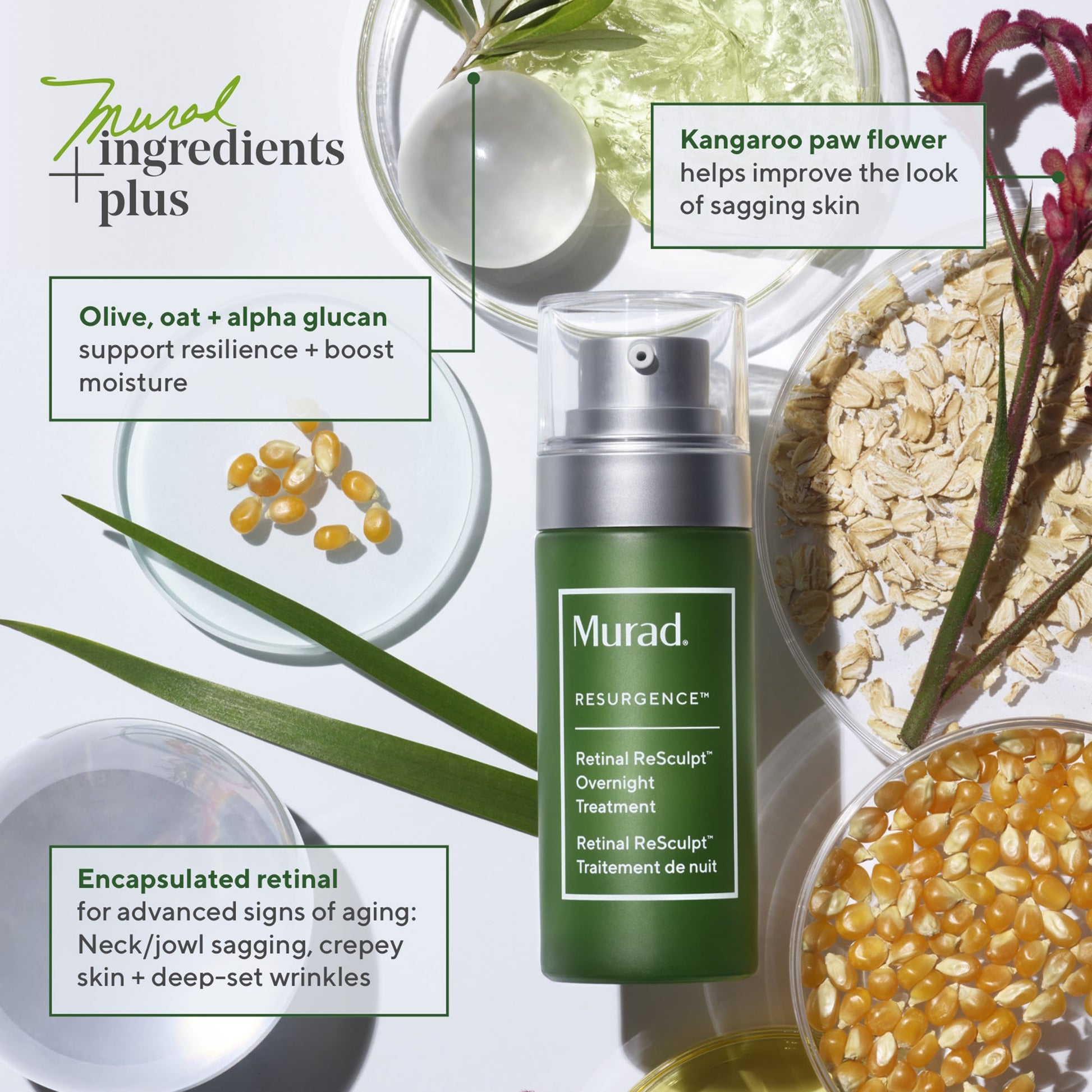 Olive, oat and alpha glucan: Work together to support skin’s resilience, boost moisture, restore the skin’s barrier and counter traditional vitamin A drawbacks like dryness and irritation