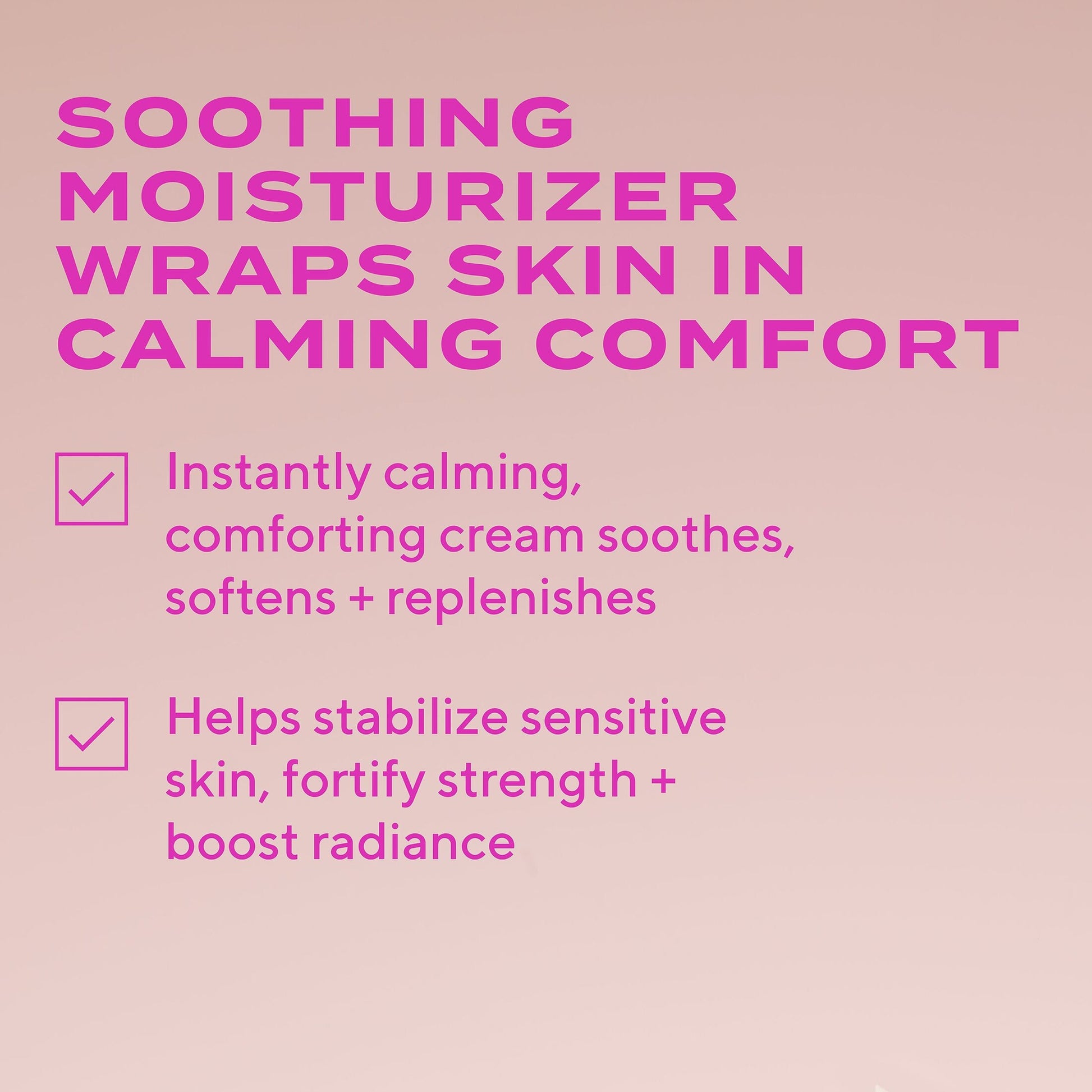 Instantly calming, comforting cream soothes and softens, helps stabilize sensitive skin, and replenishes with all-day hydration to fortify strength and boost resilience