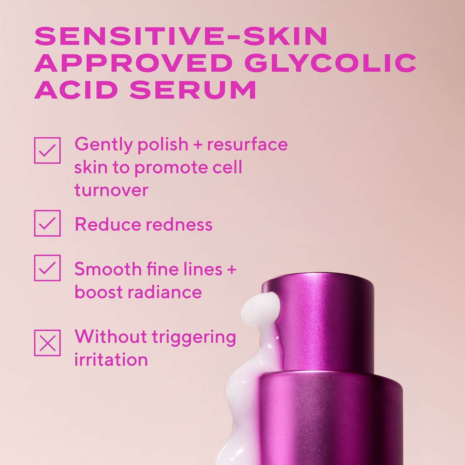 Ultra-gentle glycolic acid serum that's made for sensitive skin, delivering a slow-release microdose of AHA that delicately polishes and resurfaces to improve radiance and smooth fine lines-without triggering inflammation or irritation