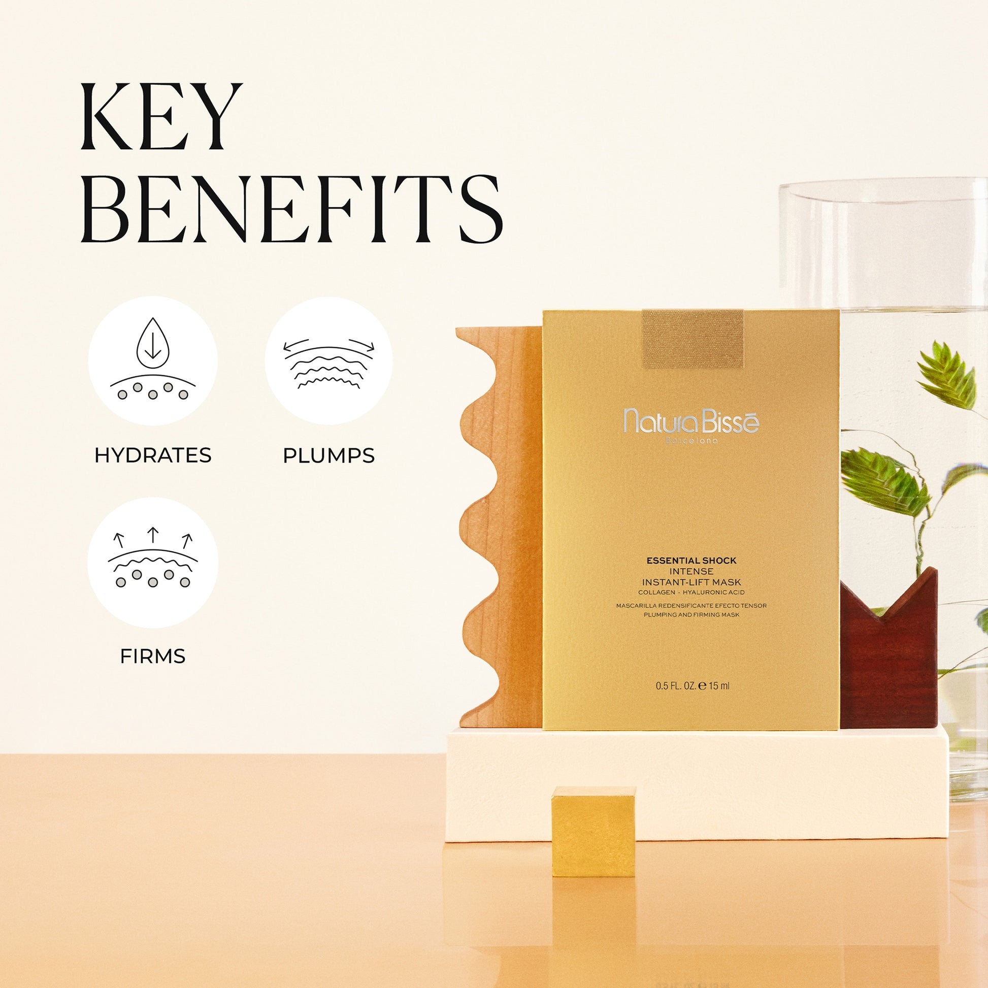 5 different molecular weights of hyaluronic acid come together to act on various skin layers by deeply hydrating and revealing a plumping effect.
