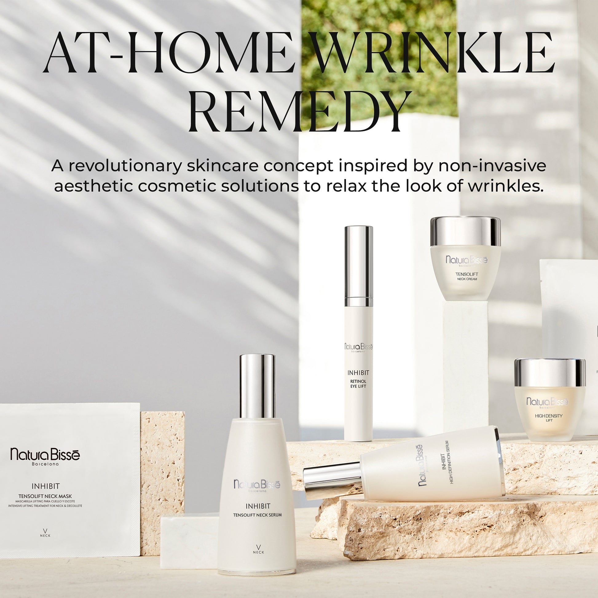 Reveal a younger-looking neck and décolleté area with Inhibit Tensolift Neck Cream by Natura Bisse. Powered by innovative ingredients such as micropeptides, collagen and elastin amino acids, this rich cream works to minimize signs of aging, vertical lines and sagginess. This go-to neck treatment hydrates and makes fragile skin appear tighter, firmer, plumper and more even in tone. It even addresses the effects of 'tech neck', which is the position of the head and neck when smart devices are held at chest or waist level with eyes focusing down on the screen.