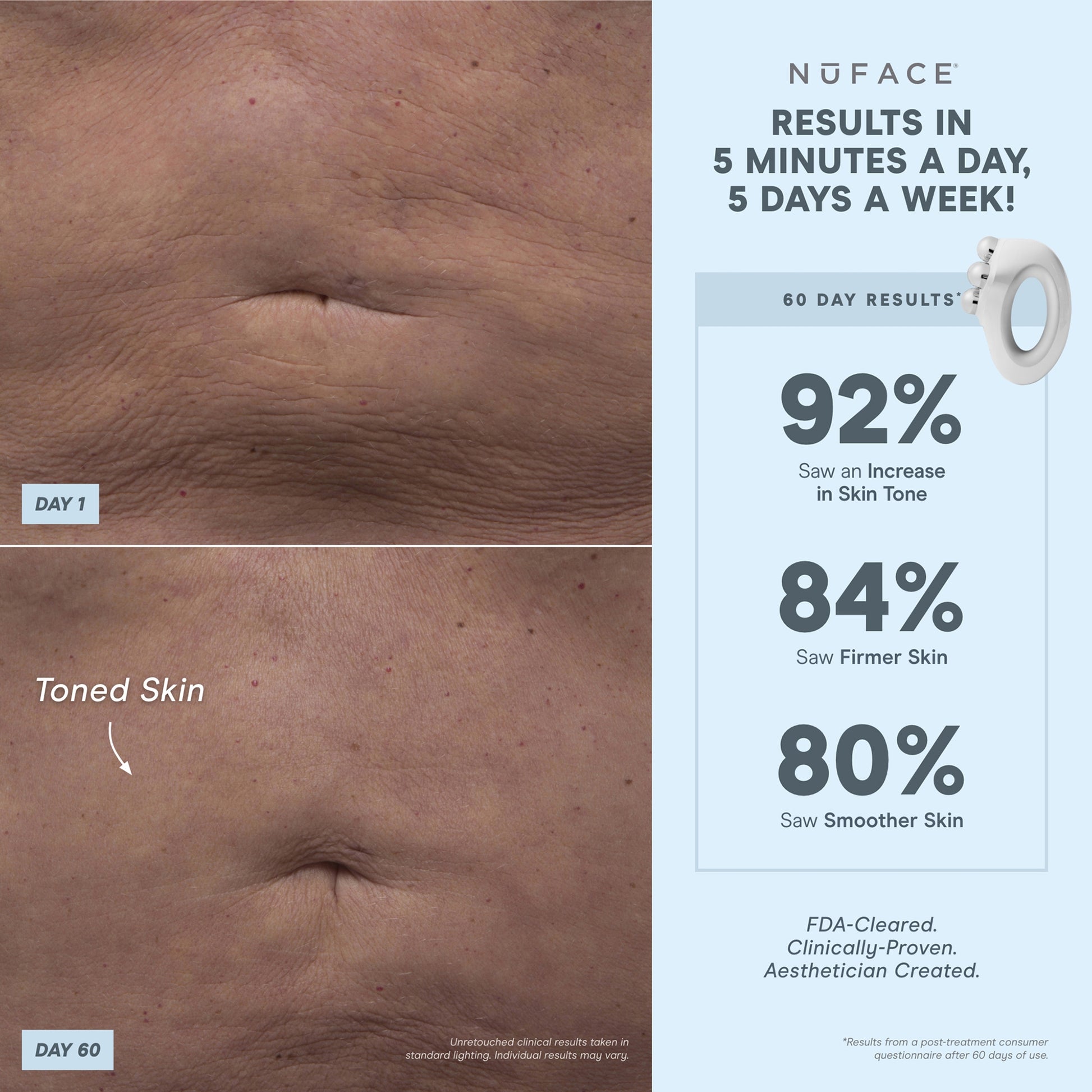 NOTE: For best results, use 5 minutes a day per treatment area. For the first 60-days use 5 times per week. After 60 days use 2-3 times per week to maintain results. Results may vary based on skin type and skin condition. Like with exercise, we recommend regular use, along with healthy nutrition and fitness for best results. This is not a weight loss product.