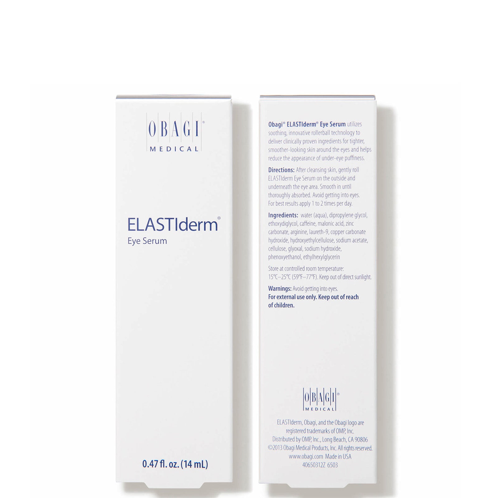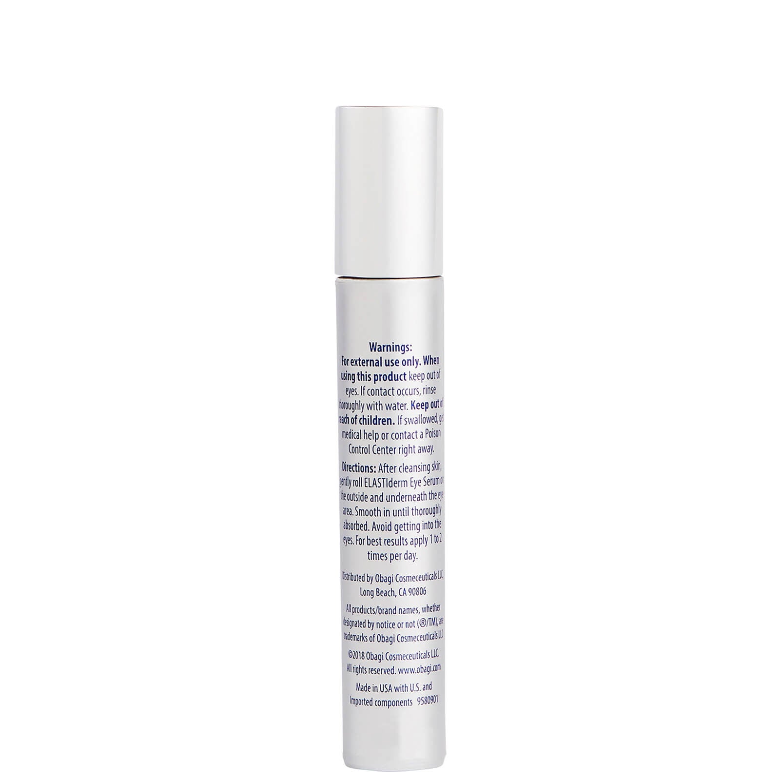 Obagi ELASTIderm Eye Serum revives the delicate skin around the eyes for a rejuvenated appearance. Bi-mineral complex promotes elasticity to tighten and smooth out wrinkles and crow's feet while malonic acid encourages skin cell renewal. Caffeine helps brighten dark under-eye circles and reduces puffiness. Features a rollerball applicator for easy application.