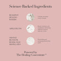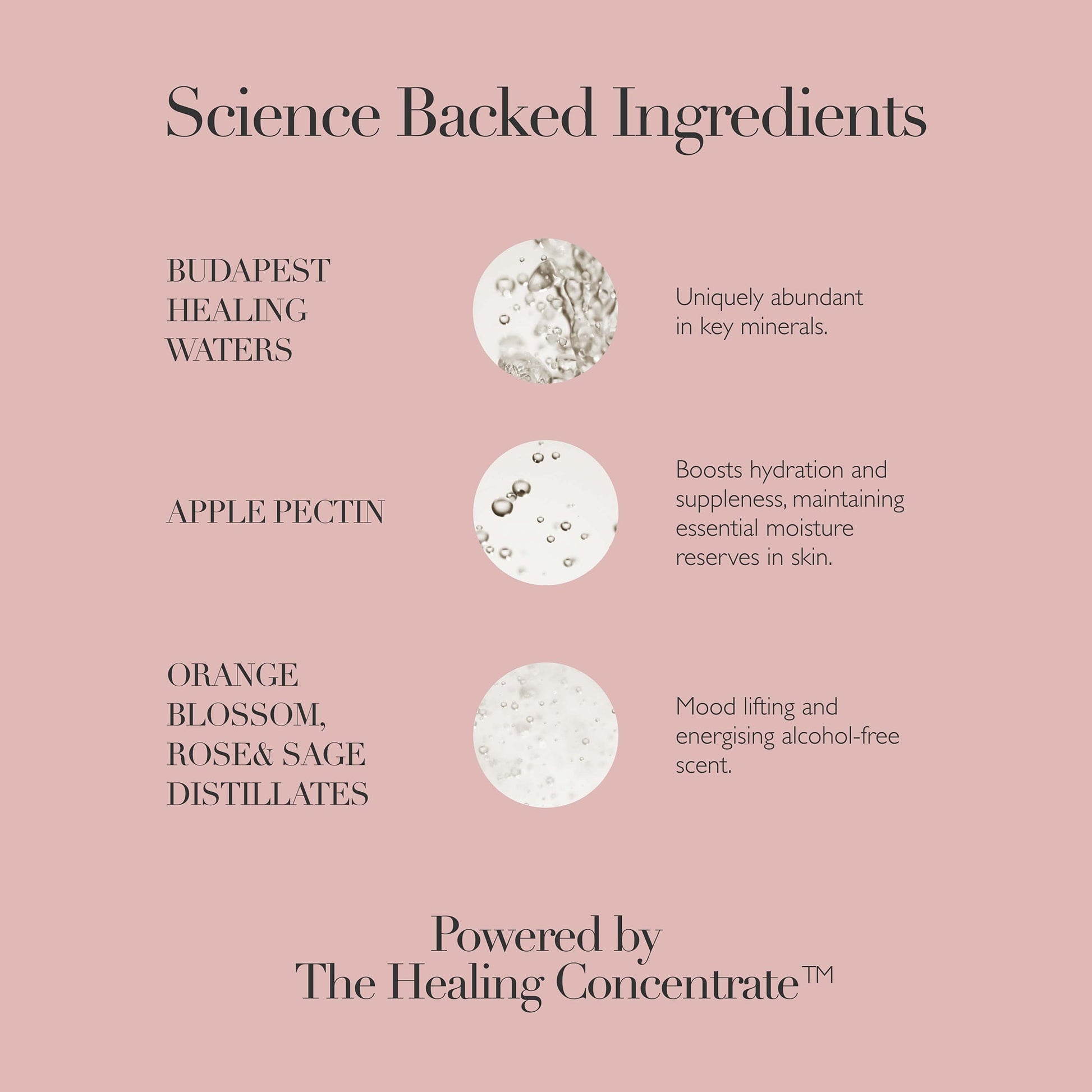 Aqua (Hungarian Thermal Water), Glycerin, Polysorbate 20, Phenoxyethanol, Pyrus Malus (Apple) Fruit Extract, Saccharomyces (Hungarian Thermal Water) Ferment Extract, Disodium EDTA, Ethylhexylglycerin, Mannitol, Malpighia Punicifolia (Acerola) Fruit Extract, Chlorella Vulgaris/Lupinus Albus Protein Ferment, Pectin, Rosa Damascena Flower Water, Citrus Aurantium Dulcis (Orange) Flower Water, Salvia Officinalis (Sage) Leaf Water, Phospholipids, Yeast Extract, Linalool, Geraniol, Citronellol.