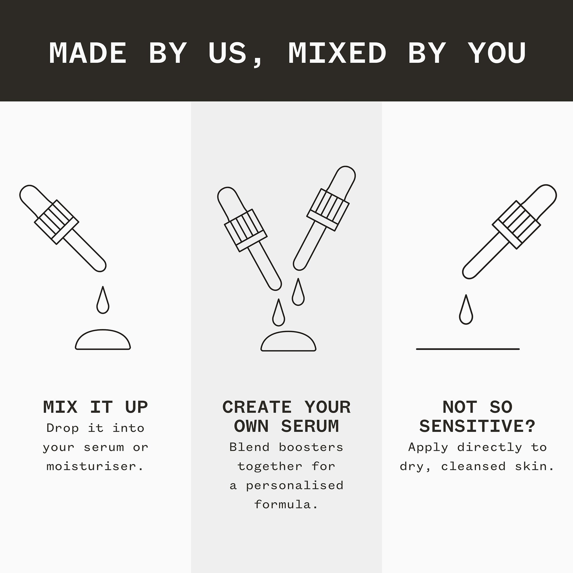Supercharge your skincare. This discovery kit features three bestselling actives to customise your routine - for brighter, smoother, hydrated skin. Putting the power into your hands, these targeted boosters can be dropped into your existing products as and when your skin needs them - without fear of irritation. Made by us, mixed by you.