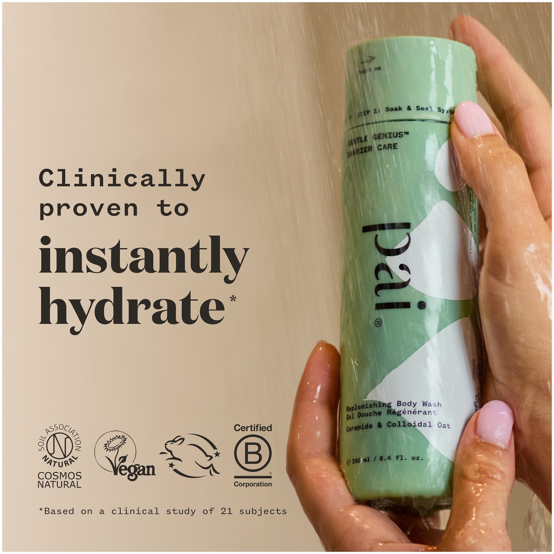 An instantly hydrating cream-to-foam body wash that protects your skin barrier for all-over calm and conditioning. This caring, non-drying formula is the first step of Pai's unique Soak & Seal SystemTM - designed to be paired with the Wet Skin Moisturiser. Powered by biomimicking Ceramides and Colloidal Oats, it gently cleanses and replenishes before Step 2 seals moisture in. Healthy barrier, happy skin.