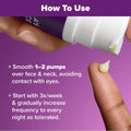 - After cleansing & toning, smooth 1-2 peasized pumps over face & neck, avoiding contact with eyes.