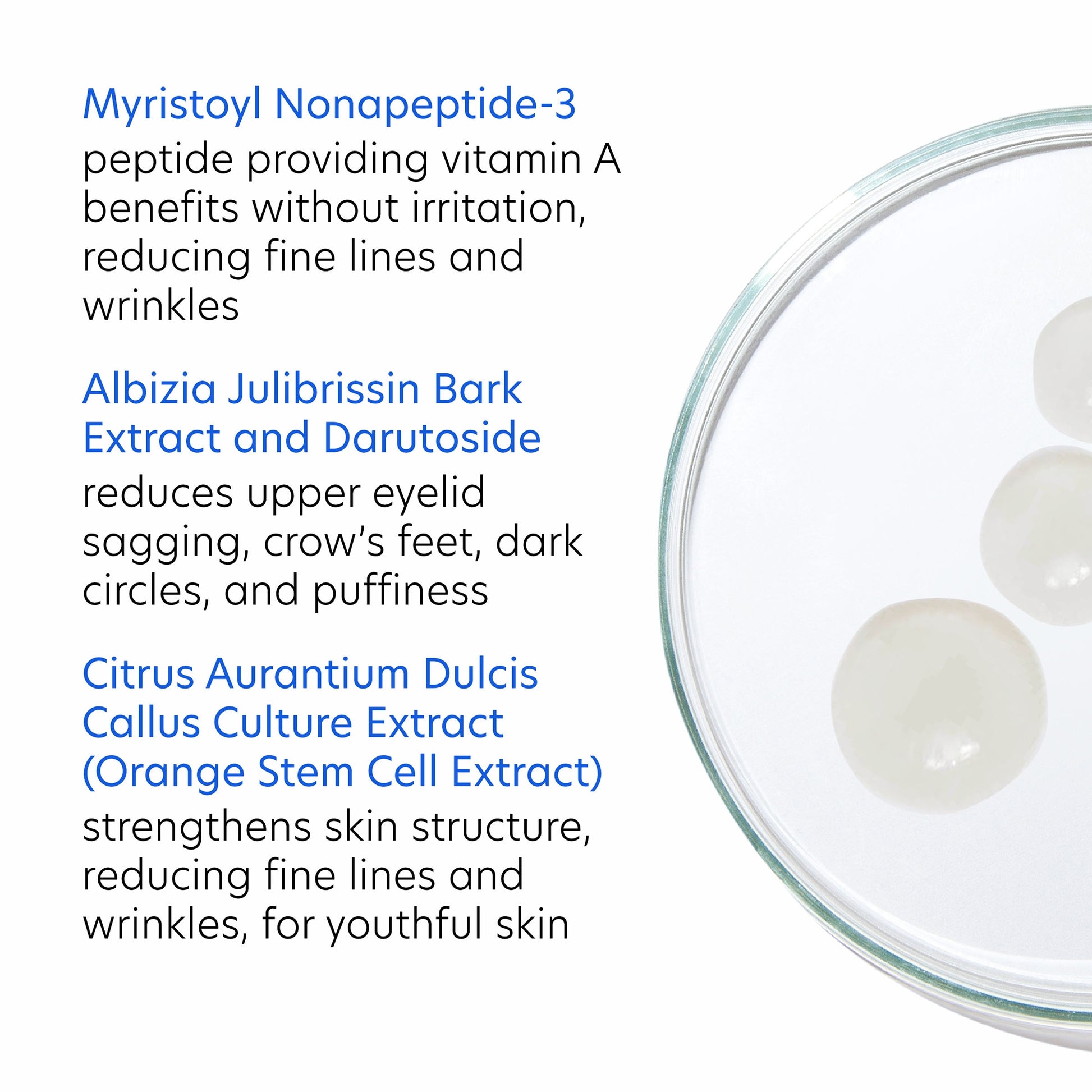 Water/Aqua/Eau, Cyclopentasiloxane, Glycerin, Propanediol, Butylene Glycol, Dimethicone, Polysilicone-11, Ethylhexyl Hydroxystearate, Hydroxyethyl Acrylate/Sodium Acryloyldimethyl Taurate Copolymer, Acacia Senegal Gum, Niacinamide, Albizia Julibrissin Bark Extract, Caprylyl Glycol, Isohexadecane, Citrus Aurantium Dulcis (Orange) Callus Culture Extract, Phenoxyethanol, Fraxinus Excelsior Bark Extract, Carbomer, Hydroxyethylcellulose, Decyl Glucoside, Hexylene Glycol, Pentylene Glycol, Aminomethyl Propanol, Polysorbate 60, Potassium Citrate, Silanetriol, Hydroxypropyl Cyclodextrin, Xanthan Gum, Myristoyl Nonapeptide-3, Crocus Chrysanthus Bulb Extract, Myristoyl Hexapeptide-4, Myristoyl Pentapeptide-8, Dipeptide Diaminobutyroyl Benzylamide Diacetate, Acetyl Tetrapeptide-5, Darutoside, Palmitoyl Tripeptide-38.