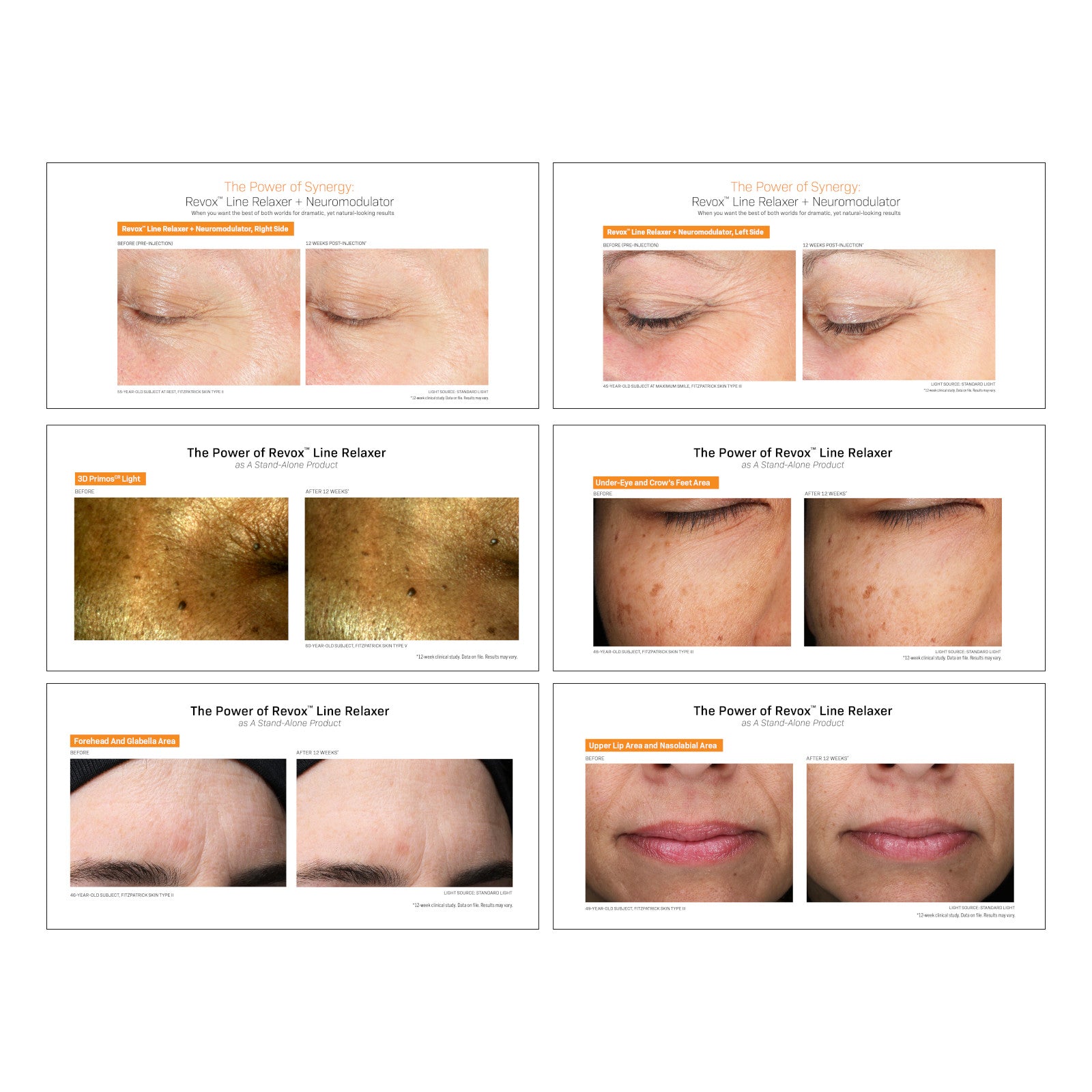 Revox™ Line Relaxer is an advanced, targeted serum specifically formulated to work synergistically with a neuromodulator. This breakthrough formula utilizes patent-pending technology to not only help optimize in-office treatments but also to deliver clinically-proven benefits on its own. While Revox™ Line Relaxer and neuromodulator injections have the same objective – to visibly reduce expression lines – they work in different ways. Revox™ Line Relaxer utilizes LineRelax™ Technology featuring five potent peptides plus Gamma-Aminobutyric Acid (GABA) to deliver dramatic results that go beyond what ordinary serums can offer. This innovative technology provides a topical infusion of benefits that helps minimize the impact of facial expressions that cause horizontal and vertical lines to appear, including forehead and glabellar lines, crow’s feet and under-eye lines, nasolabial folds, marionette and vertical lip lines. In addition, Revox Line Relaxer™ contains a Dermal Support Blend of three specialized peptides plus two highly efficacious botanical extracts to help reduce the appearance of fine lines and wrinkles and improve the look of skin elasticity. This robust formula also provides other essential benefits that can significantly improve overall skin appearance.