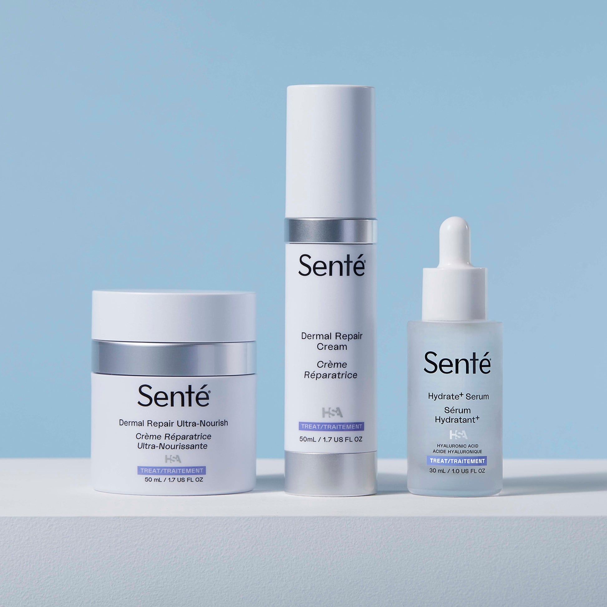 Analog (HSA) molecule. HSA has been clinically shown to deliver deep hydration, improve skin-barrier function, and help soothe inflammation potentially triggered by low molecular weight Hyaluronic Acid. Together, Hyaluronic Acid and HSA provide instant and long-term hydration across all layers of the skin-and you can only find this cutting-edge ingredient pairing in Senté Hydrate Serum.
