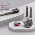 - Curlers- Attach to automatically wrap, curl, and set hassle-free curls in seconds with no heat damage. Includes 2 curlers to curl in different directions.