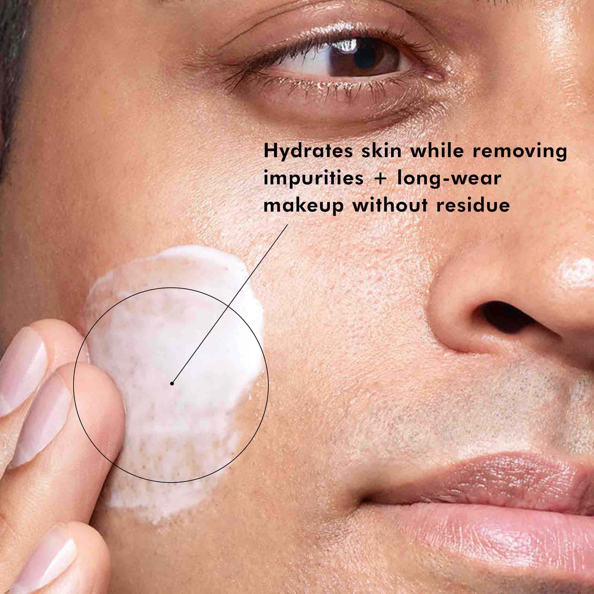 - Softens skin while cleansing and lifting surface debris
