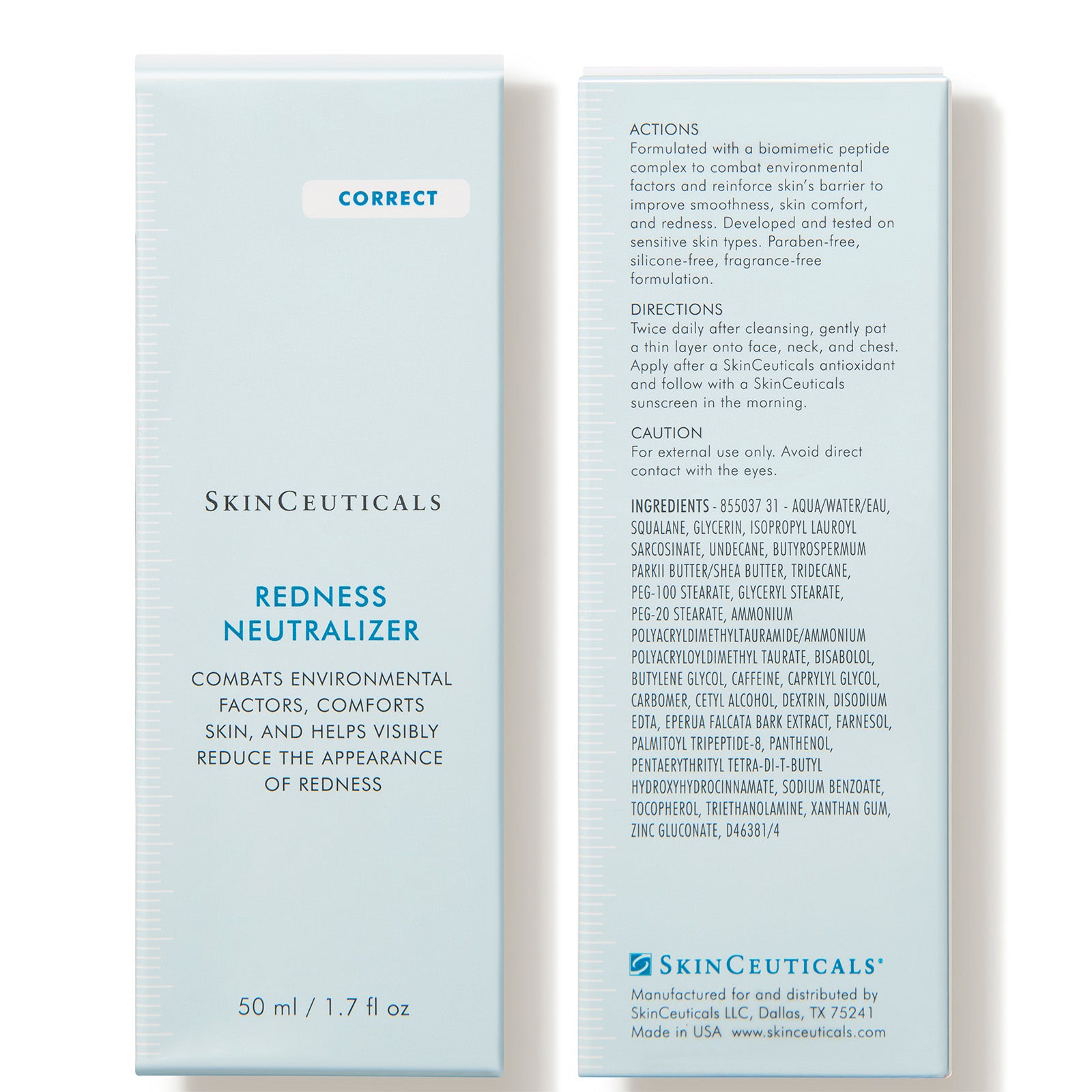 SkinCeuticals Redness Neutralizer helps improve the skin's tone and texture and discomfort associated with sensitive skin. This lightweight formula combines biomimetic peptides and botanical soothing ingredients to combat the effects of environmental triggers that can lead to the appearance of redness and flushing, as well burning and discomfort.