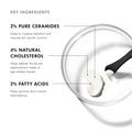 - Restores essential skin lipids: ceramides, natural cholesterol, and fatty acids
