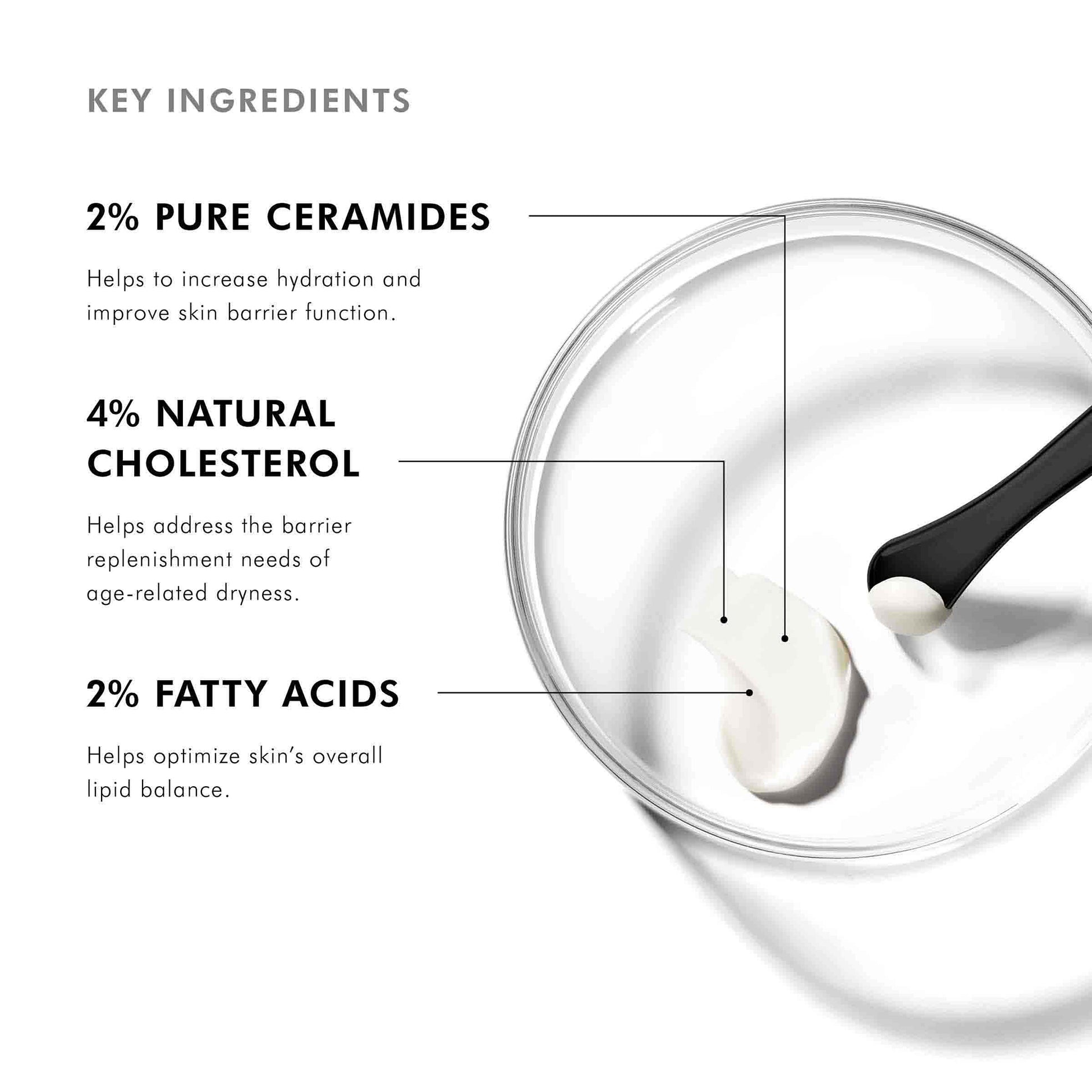 - Essential Lipids: featuring natural cholesterol, pure ceramides and fatty acids, it restores skin's youthful elasticity and hydration cycles