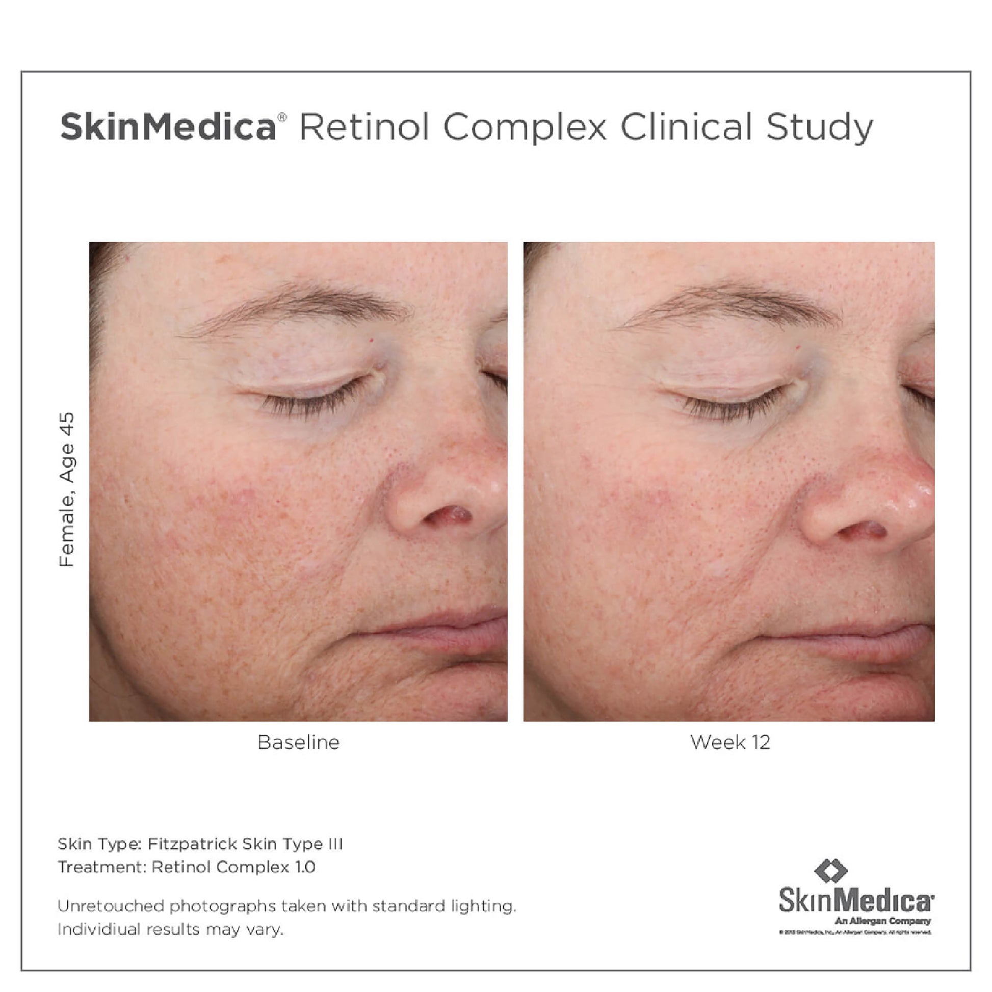SkinMedica's Age Defense Retinol Complex 1.0 enhances the skin's appearance to promote a smoother, rejuvenated complexion. Formulated for skin types pre-conditioned to retinol treatments, it minimizes the appearance of age spots and wrinkles. It also improves elasticity and works effectively to visibly reduce acne scars. With continued use, faster cell renewal is encouraged.